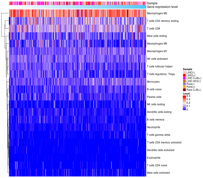 Relationship between gene expression and immune infiltrating cell level