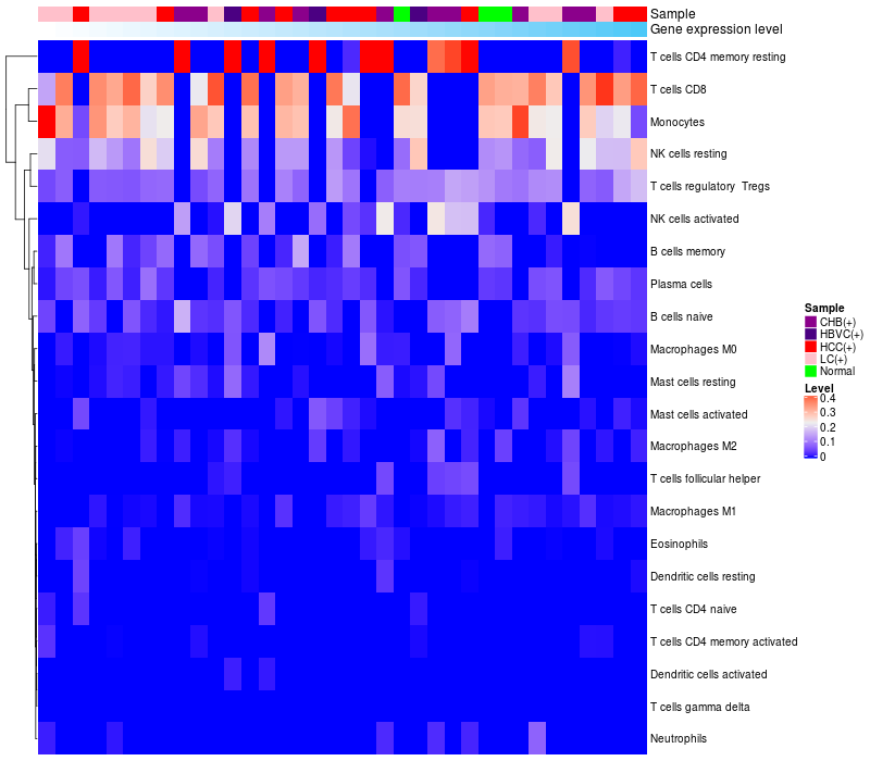 Liver hepatocellular carcinoma HCV (HBV+)(86), Liver hepatocellular carcinoma HCV (HBV-)(19), Liver hepatocellular carcinoma (HBV+)(209), Liver hepatocellular carcinoma (HBV+)(60), Paracancerous HCV (HBV+)(4), Paracancerous (HBV-)(28), Paracancerous (HBV+)(18) |