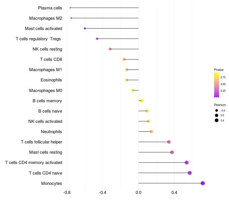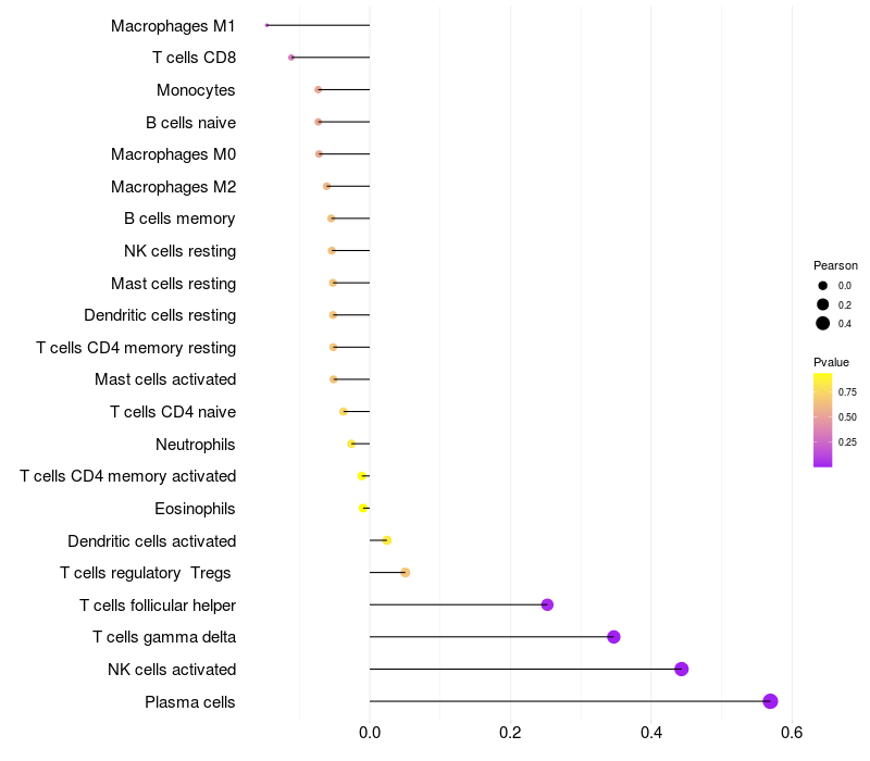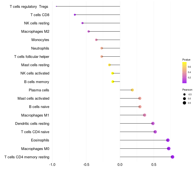 Lollipop of CTSK expression and immune infiltrating cell level correlation result in HBV+ Liver cirrhosis samples