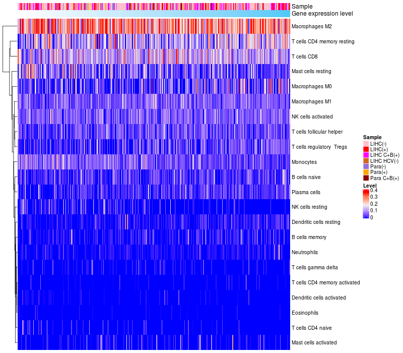 Liver hepatocellular carcinoma HCV (HBV+)(86), Liver hepatocellular carcinoma HCV (HBV-)(19), Liver hepatocellular carcinoma (HBV+)(209), Liver hepatocellular carcinoma (HBV+)(60), Paracancerous HCV (HBV+)(4), Paracancerous (HBV-)(28), Paracancerous (HBV+)(18) |