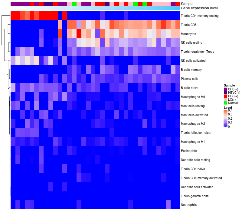 Relationship between gene expression and immune infiltrating cell level