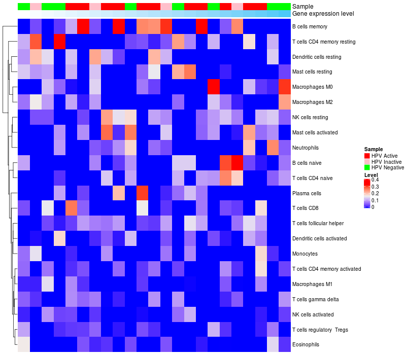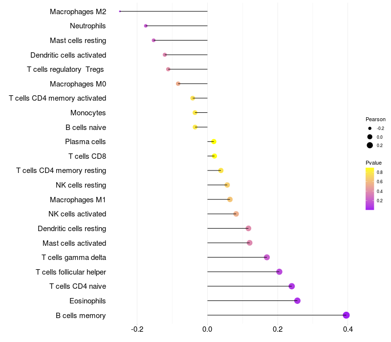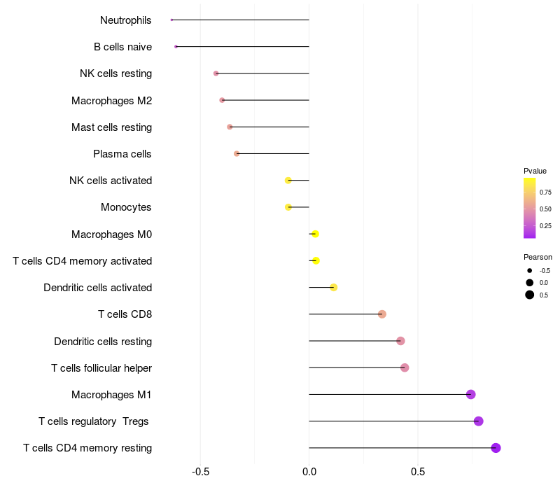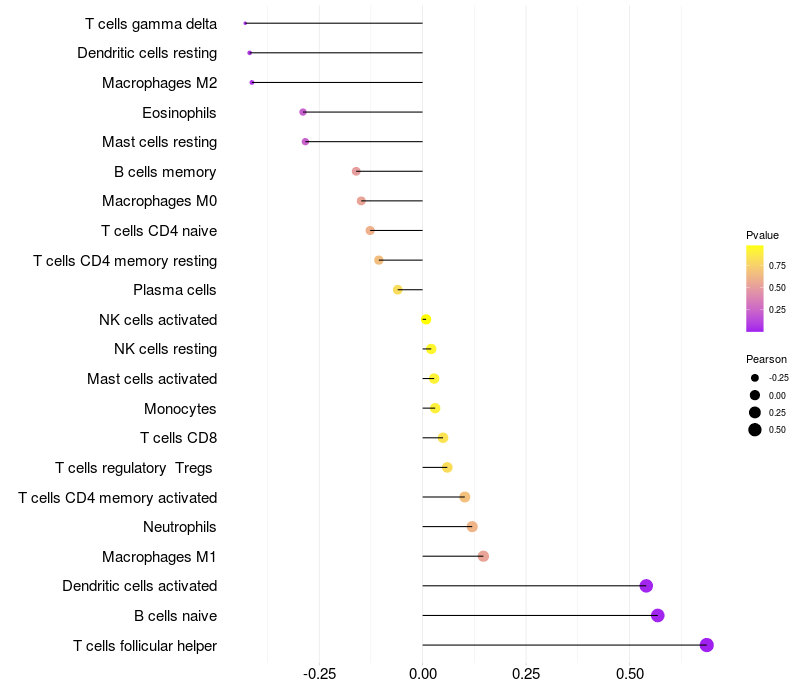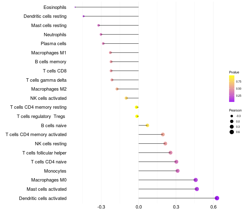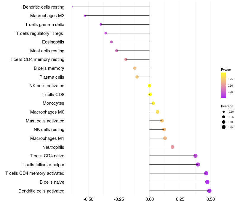 Lollipop of D2HGDH expression and immune infiltrating cell level correlation result in HPV+ samples