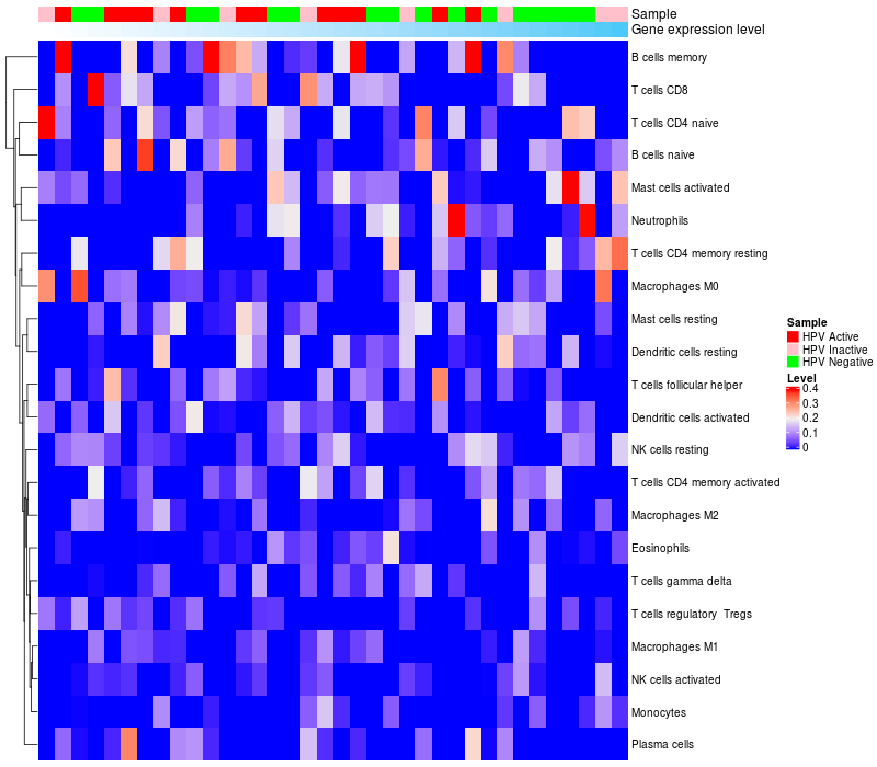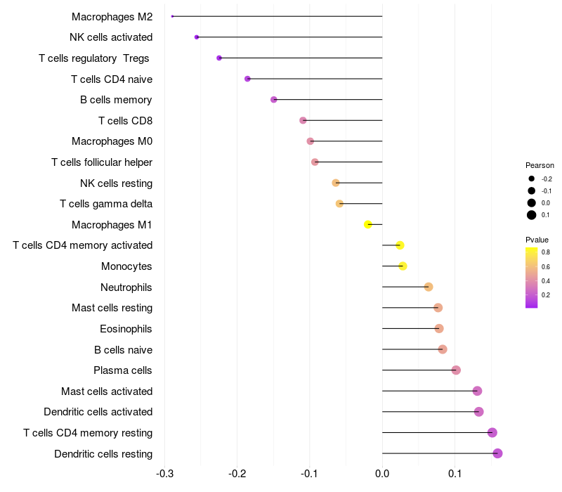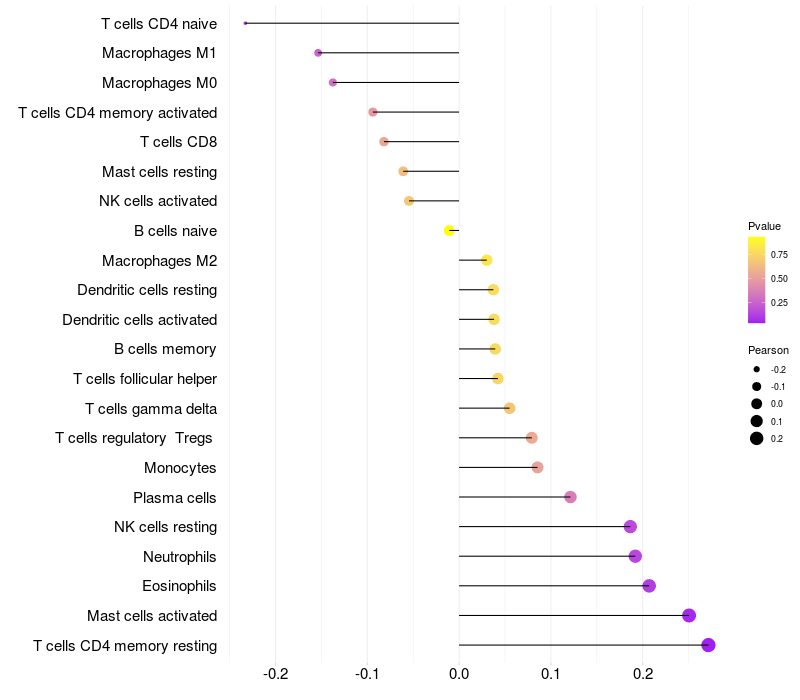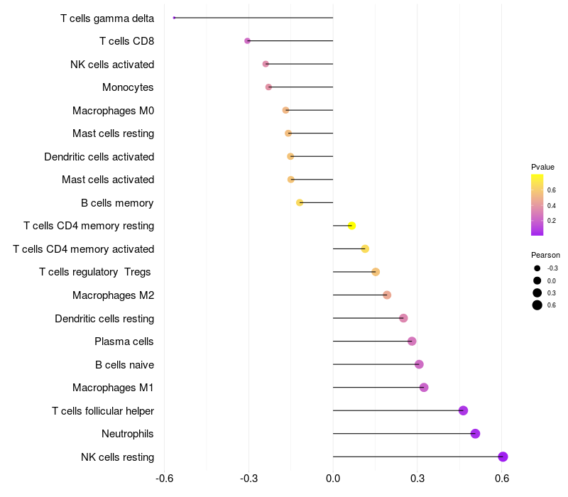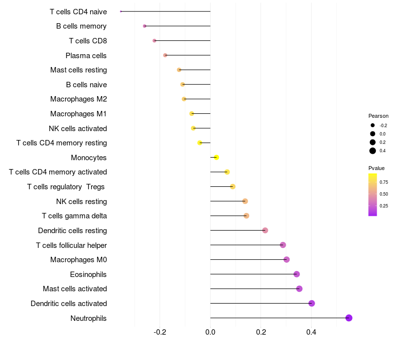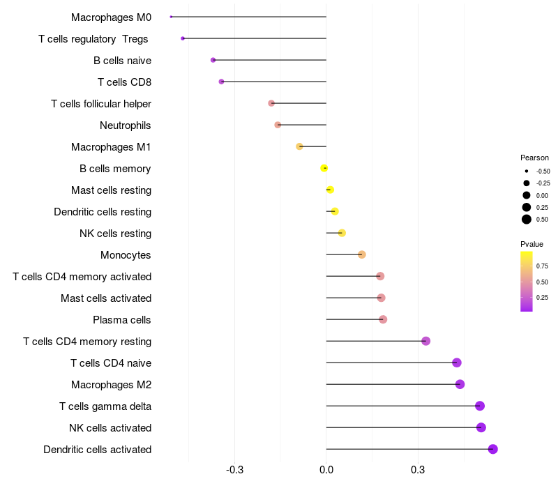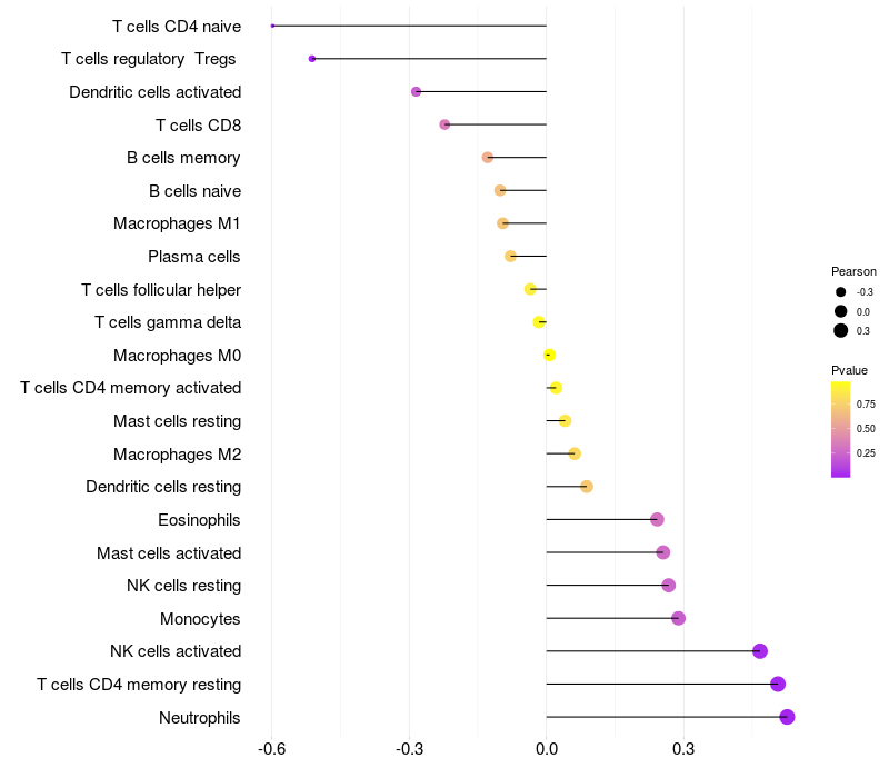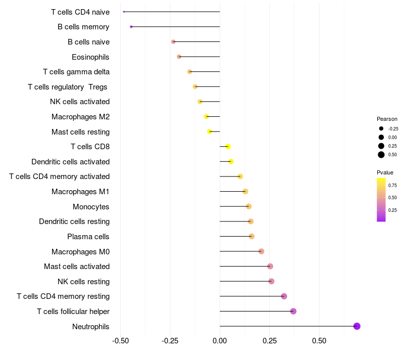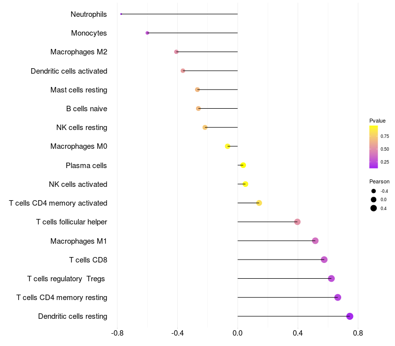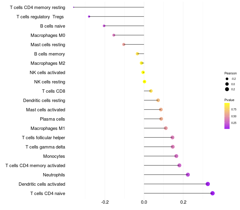 Lollipop of DCTN6 expression and immune infiltrating cell level correlation result in HPV+ samples