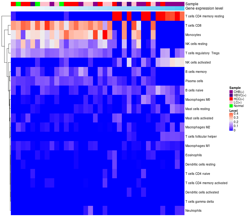 Liver hepatocellular carcinoma HCV (HBV+)(86), Liver hepatocellular carcinoma HCV (HBV-)(19), Liver hepatocellular carcinoma (HBV+)(209), Liver hepatocellular carcinoma (HBV+)(60), Paracancerous HCV (HBV+)(4), Paracancerous (HBV-)(28), Paracancerous (HBV+)(18) |