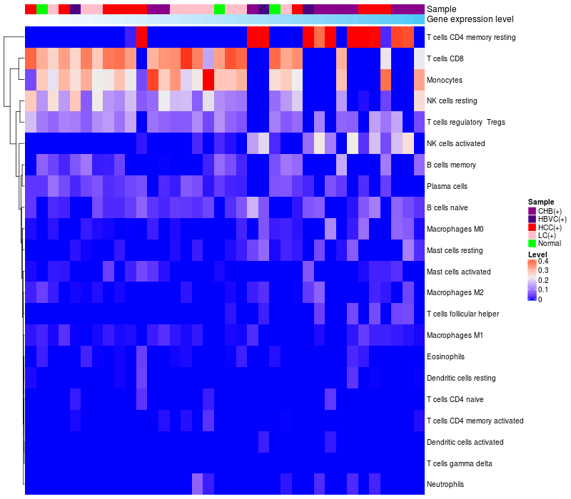 Liver hepatocellular carcinoma HCV (HBV+)(86), Liver hepatocellular carcinoma HCV (HBV-)(19), Liver hepatocellular carcinoma (HBV+)(209), Liver hepatocellular carcinoma (HBV+)(60), Paracancerous HCV (HBV+)(4), Paracancerous (HBV-)(28), Paracancerous (HBV+)(18) |