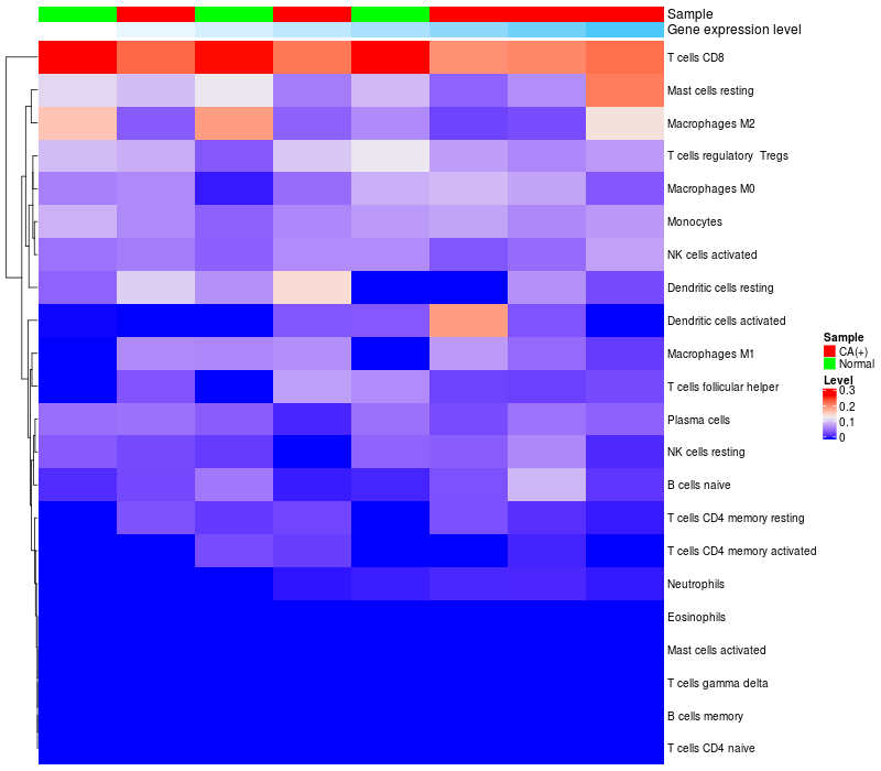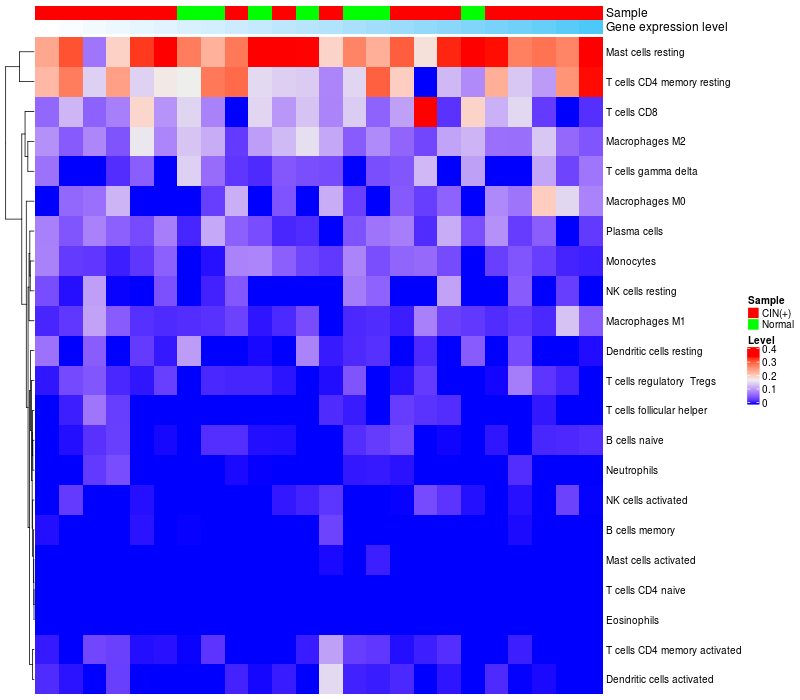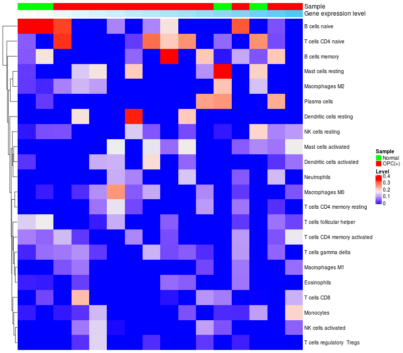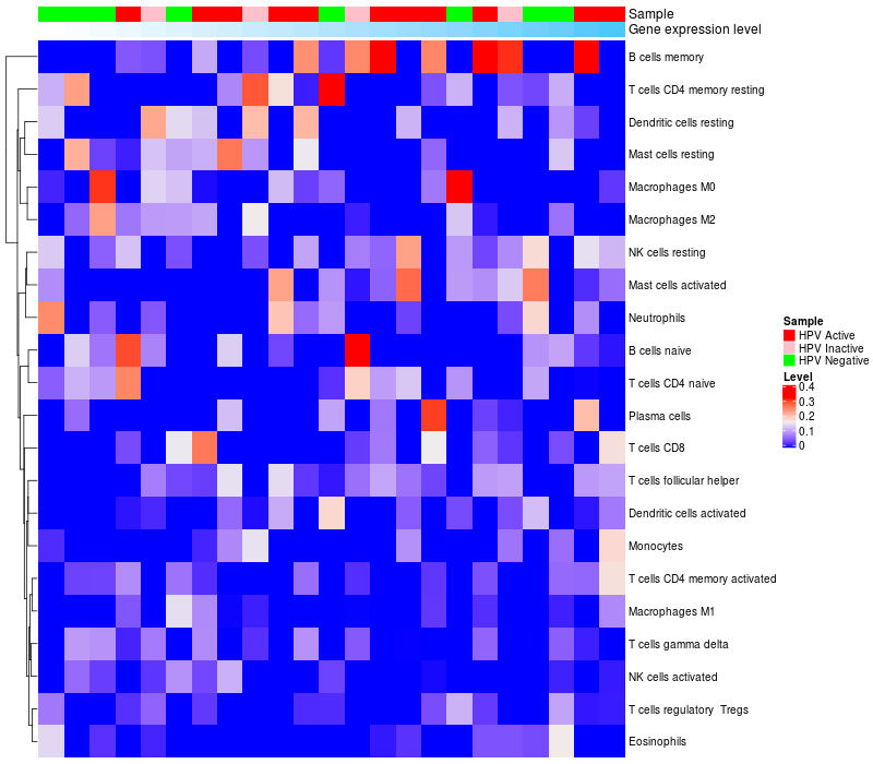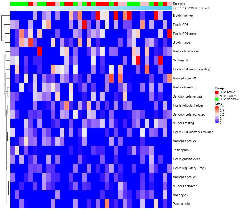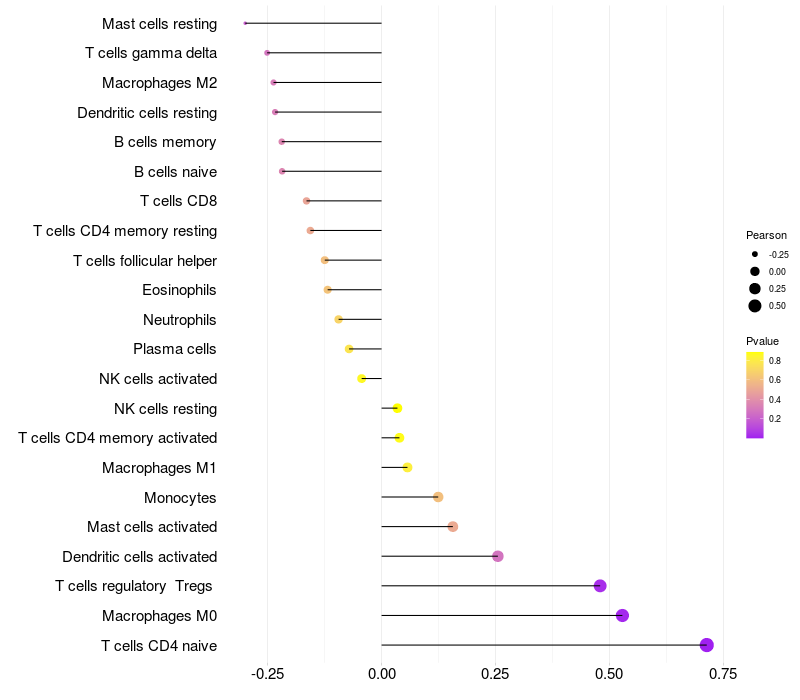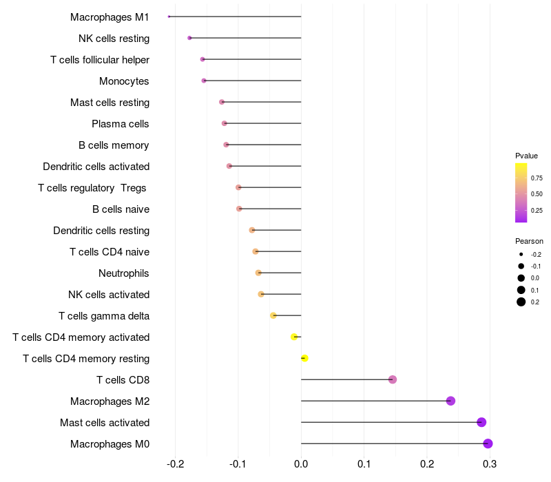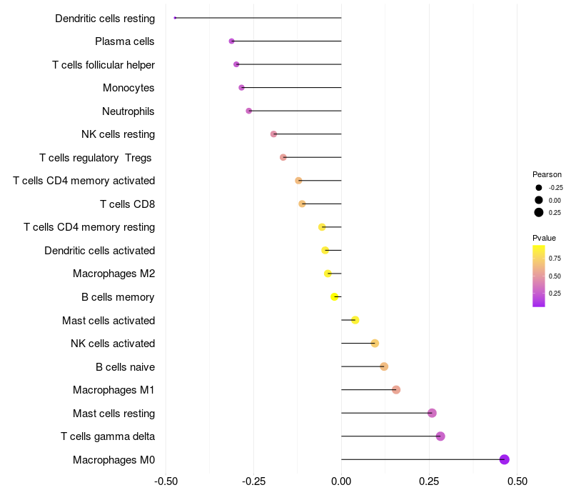 Lollipop of DMP1 expression and immune infiltrating cell level correlation result in HPV+ samples