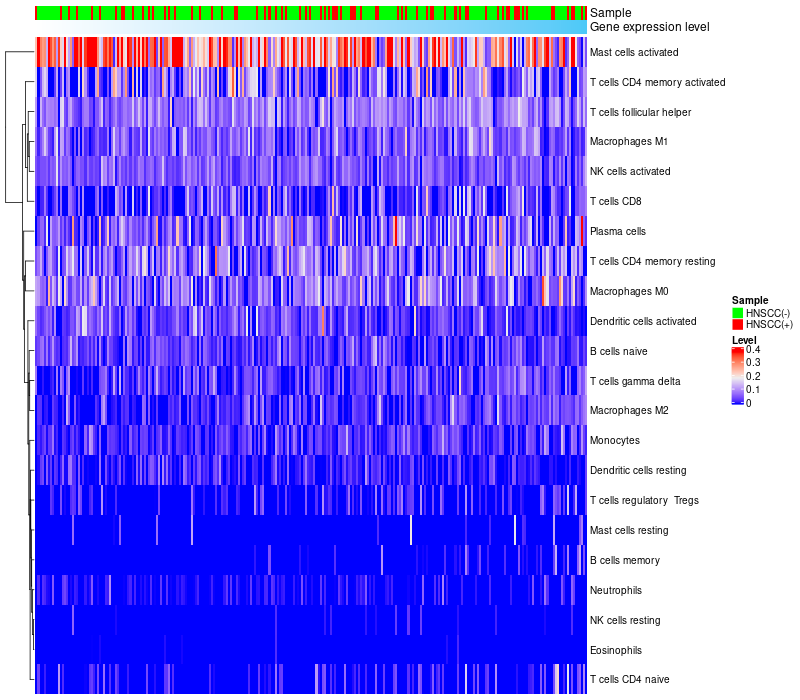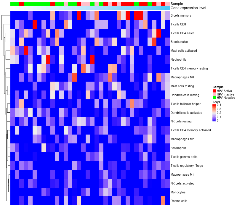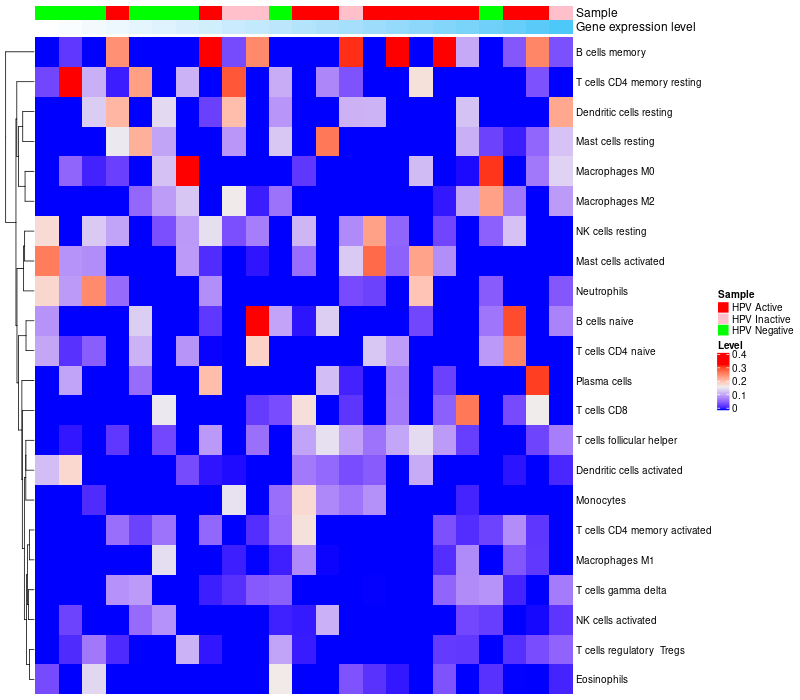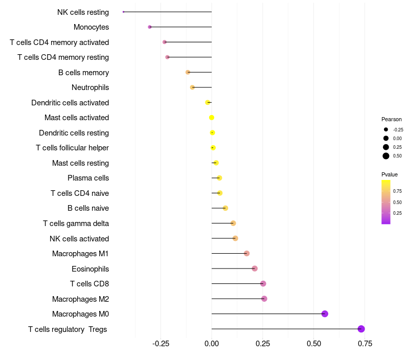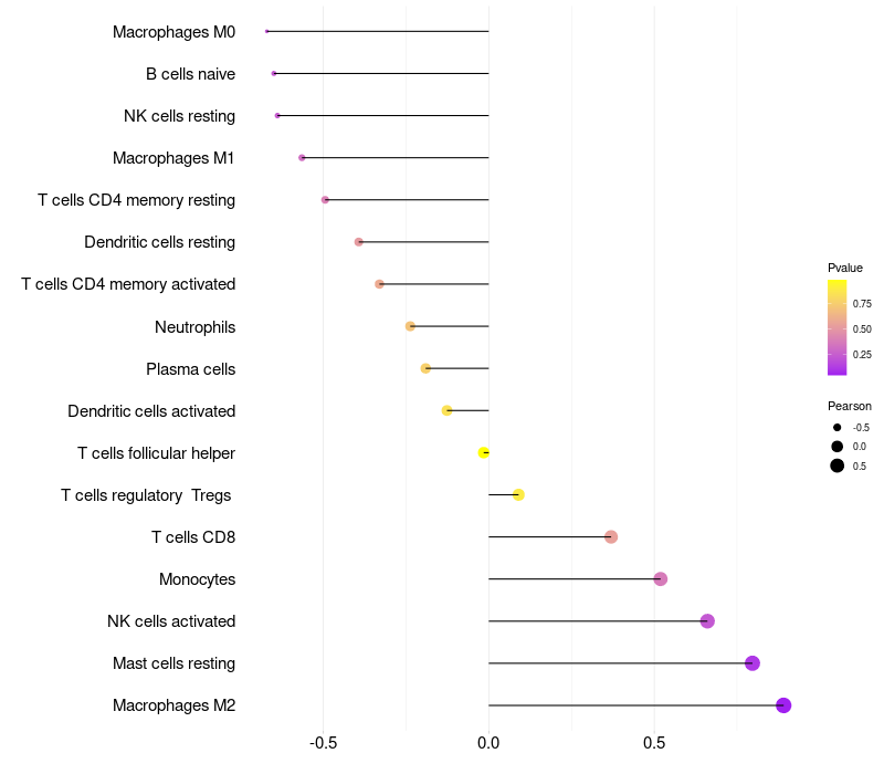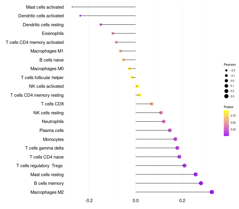 Lollipop of DPT expression and immune infiltrating cell level correlation result in HPV+ samples