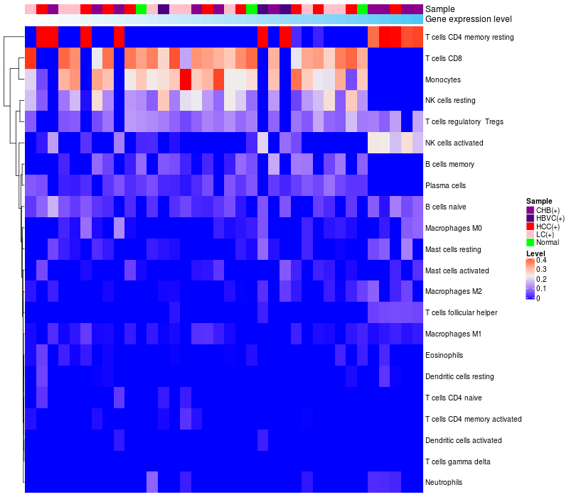 Liver hepatocellular carcinoma HCV (HBV+)(86), Liver hepatocellular carcinoma HCV (HBV-)(19), Liver hepatocellular carcinoma (HBV+)(209), Liver hepatocellular carcinoma (HBV+)(60), Paracancerous HCV (HBV+)(4), Paracancerous (HBV-)(28), Paracancerous (HBV+)(18) |