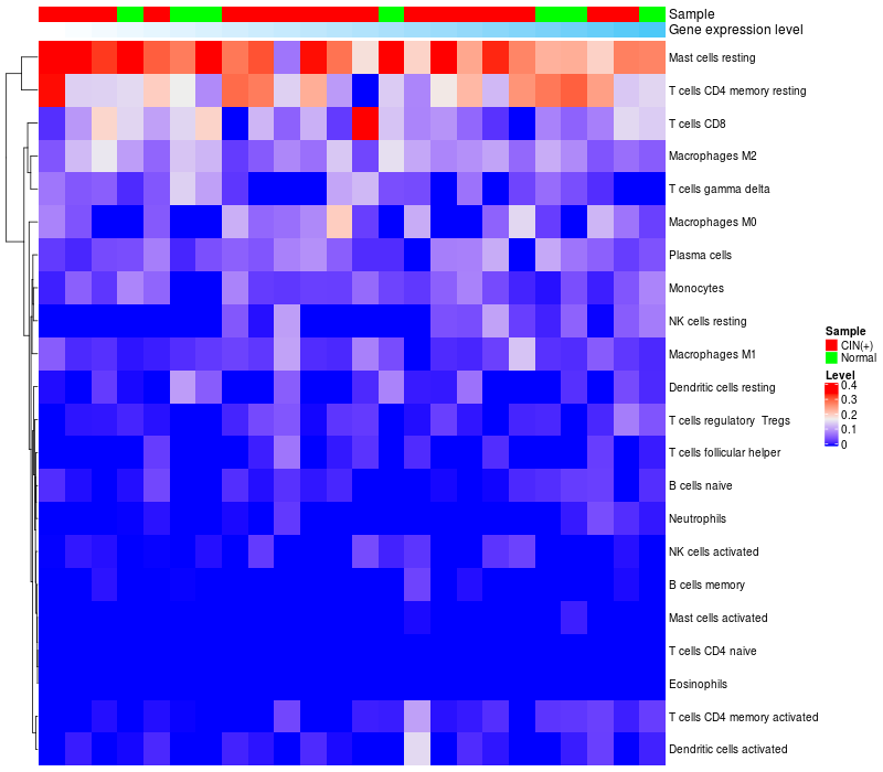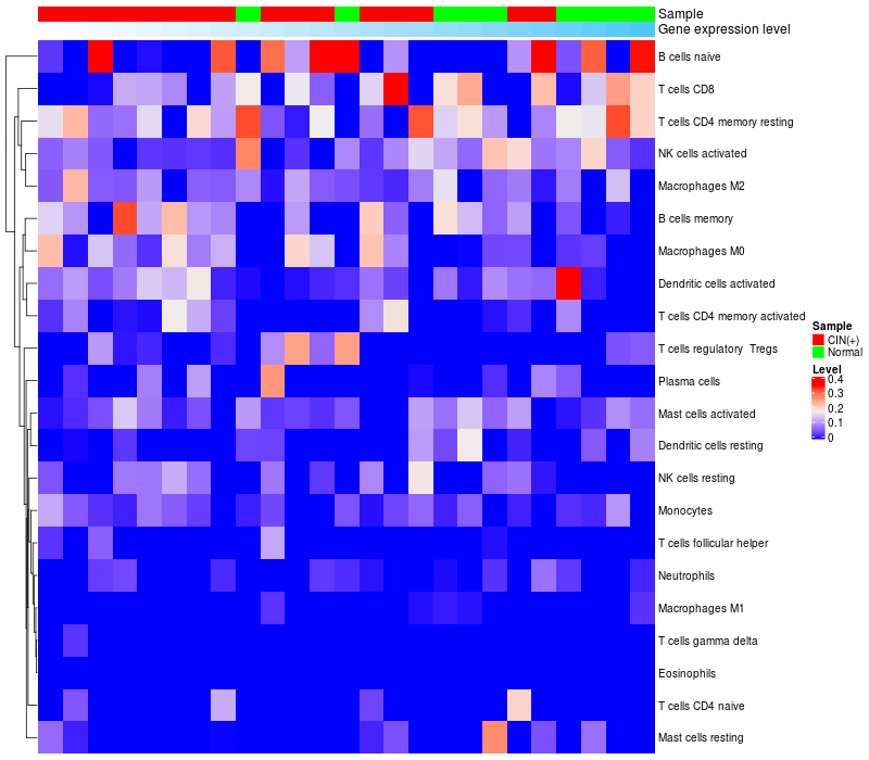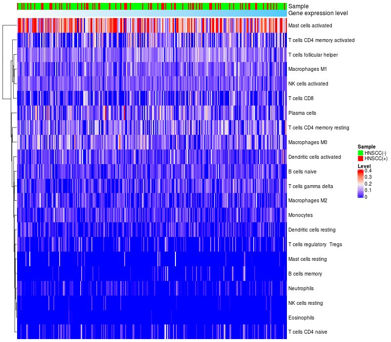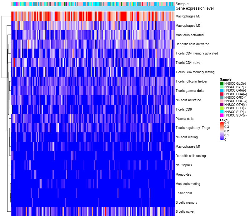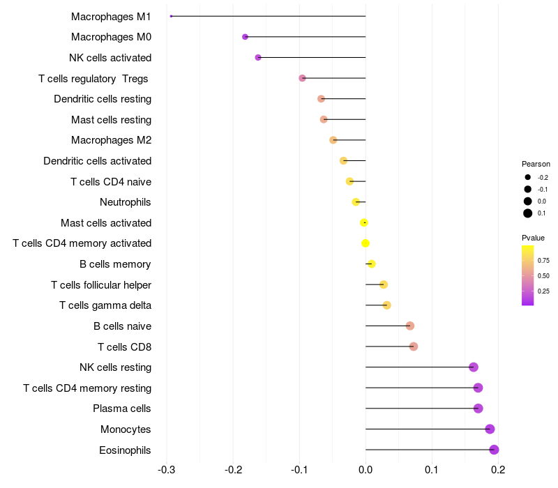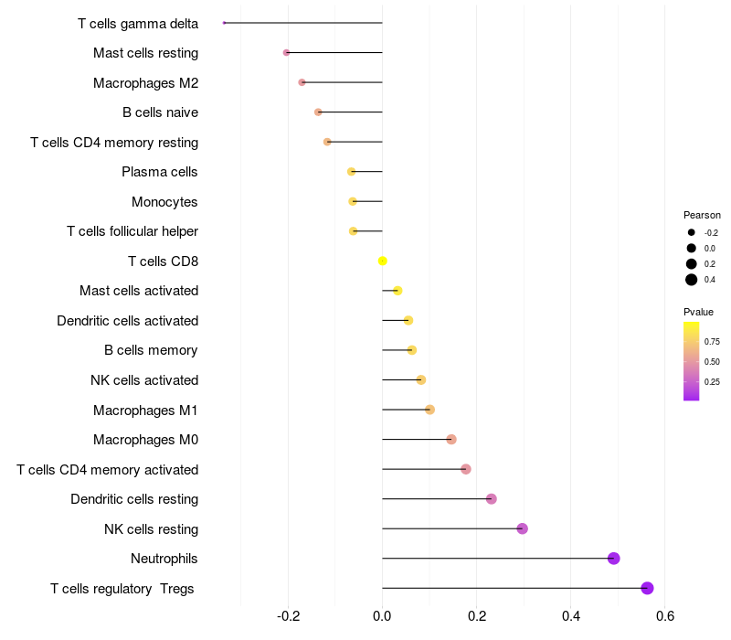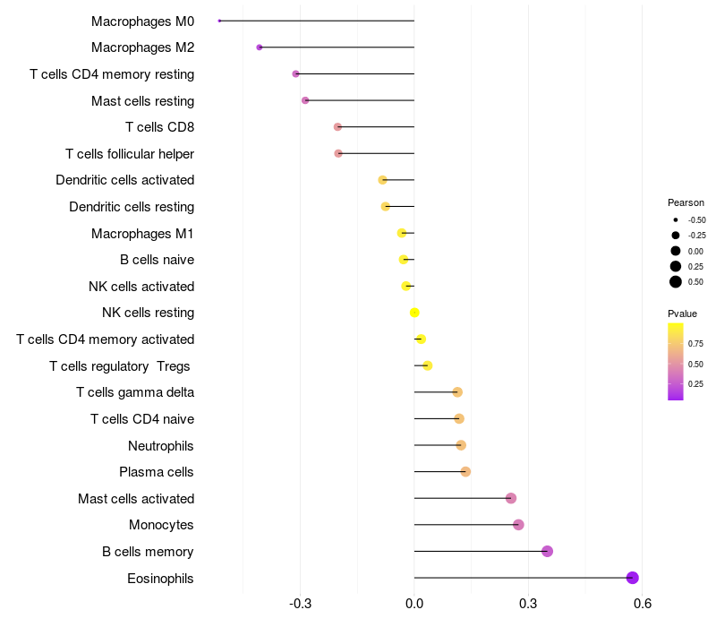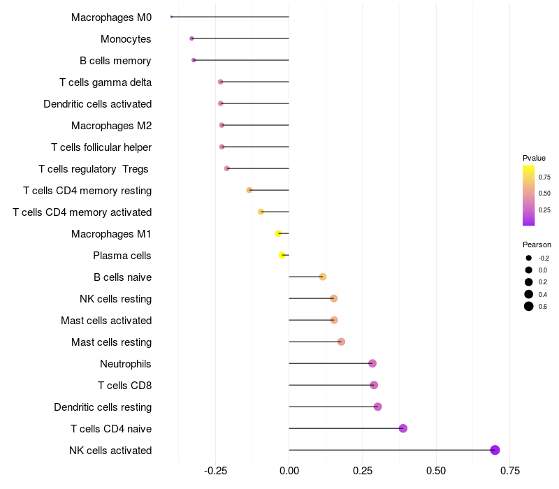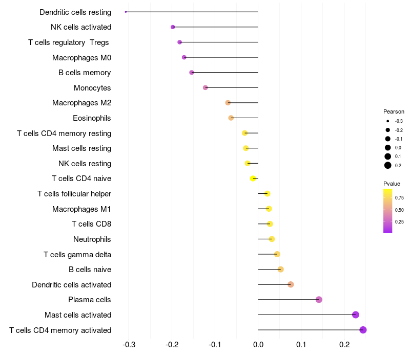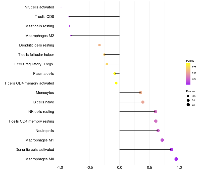 Lollipop of DUSP5 expression and immune infiltrating cell level correlation result in HPV+ samples
