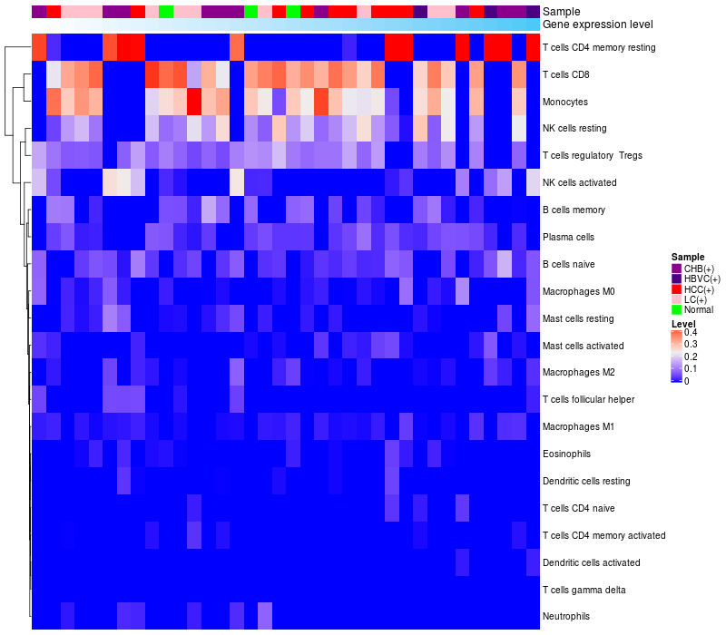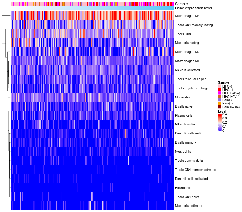 Liver hepatocellular carcinoma HCV (HBV+)(86), Liver hepatocellular carcinoma HCV (HBV-)(19), Liver hepatocellular carcinoma (HBV+)(209), Liver hepatocellular carcinoma (HBV+)(60), Paracancerous HCV (HBV+)(4), Paracancerous (HBV-)(28), Paracancerous (HBV+)(18) |