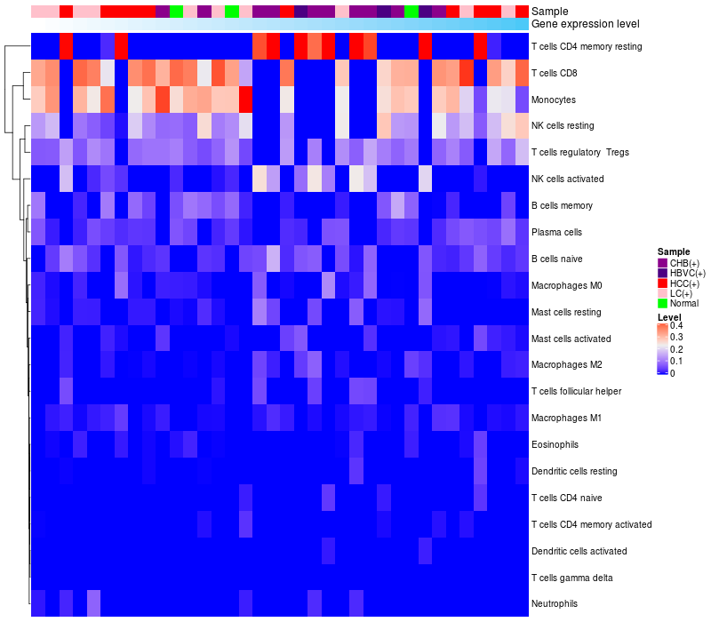 Relationship between gene expression and immune infiltrating cell level