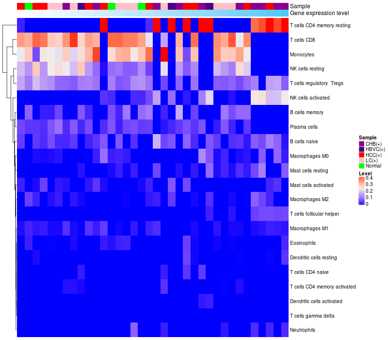 Relationship between gene expression and immune infiltrating cell level
