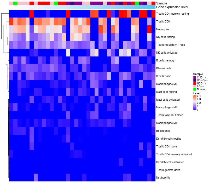 Liver hepatocellular carcinoma HCV (HBV+)(86), Liver hepatocellular carcinoma HCV (HBV-)(19), Liver hepatocellular carcinoma (HBV+)(209), Liver hepatocellular carcinoma (HBV+)(60), Paracancerous HCV (HBV+)(4), Paracancerous (HBV-)(28), Paracancerous (HBV+)(18) |