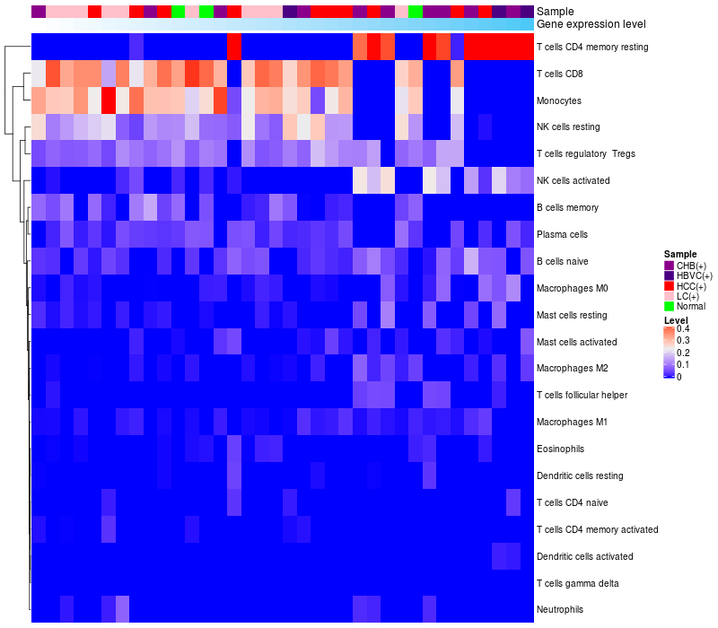 Relationship between gene expression and immune infiltrating cell level