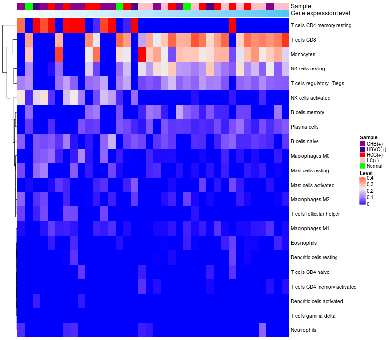 Relationship between gene expression and immune infiltrating cell level