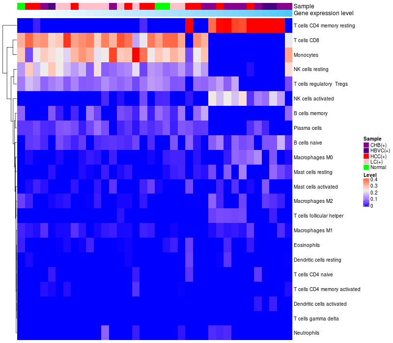 Liver hepatocellular carcinoma HCV (HBV+)(86), Liver hepatocellular carcinoma HCV (HBV-)(19), Liver hepatocellular carcinoma (HBV+)(209), Liver hepatocellular carcinoma (HBV+)(60), Paracancerous HCV (HBV+)(4), Paracancerous (HBV-)(28), Paracancerous (HBV+)(18) |