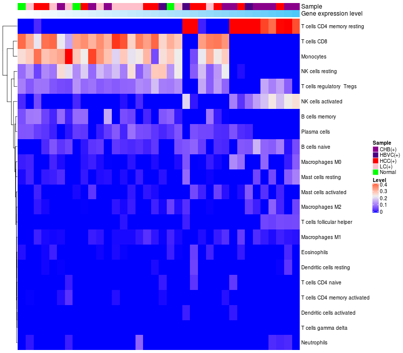 Relationship between gene expression and immune infiltrating cell level