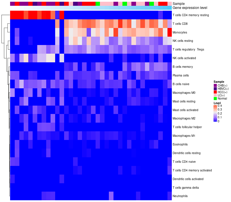 Liver hepatocellular carcinoma HCV (HBV+)(86), Liver hepatocellular carcinoma HCV (HBV-)(19), Liver hepatocellular carcinoma (HBV+)(209), Liver hepatocellular carcinoma (HBV+)(60), Paracancerous HCV (HBV+)(4), Paracancerous (HBV-)(28), Paracancerous (HBV+)(18) |