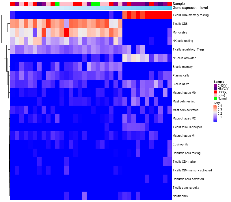 Liver hepatocellular carcinoma HCV (HBV+)(86), Liver hepatocellular carcinoma HCV (HBV-)(19), Liver hepatocellular carcinoma (HBV+)(209), Liver hepatocellular carcinoma (HBV+)(60), Paracancerous HCV (HBV+)(4), Paracancerous (HBV-)(28), Paracancerous (HBV+)(18) |