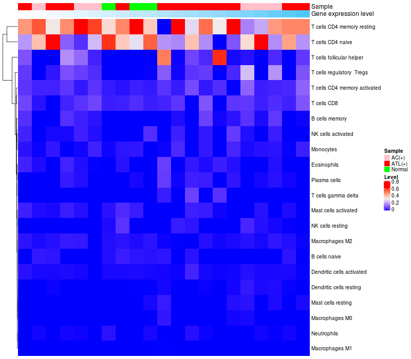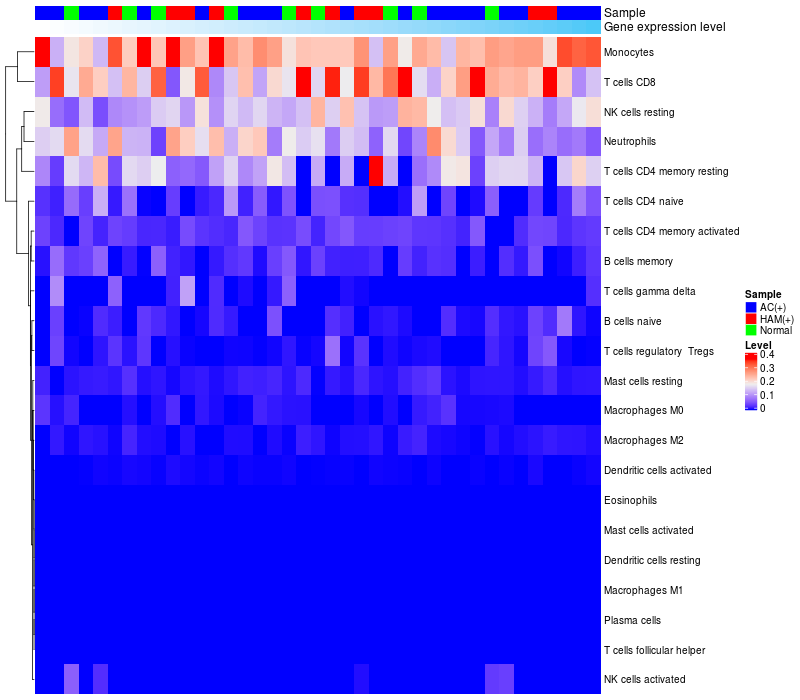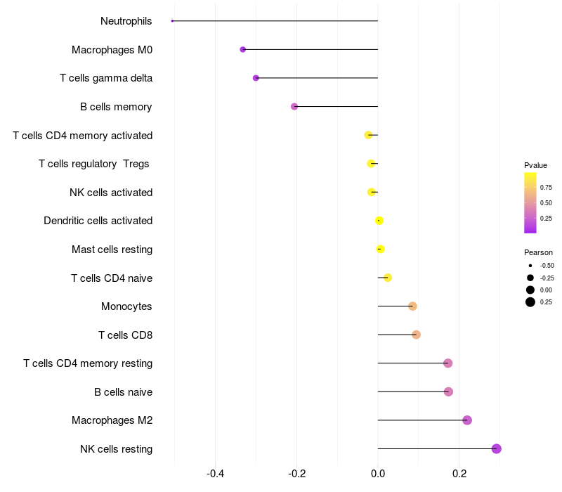 Relationship between gene expression and immune infiltrating cell level