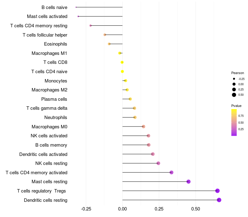 Relationship between gene expression and immune infiltrating cell level