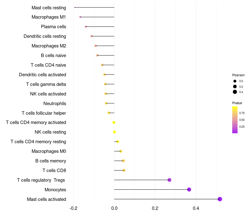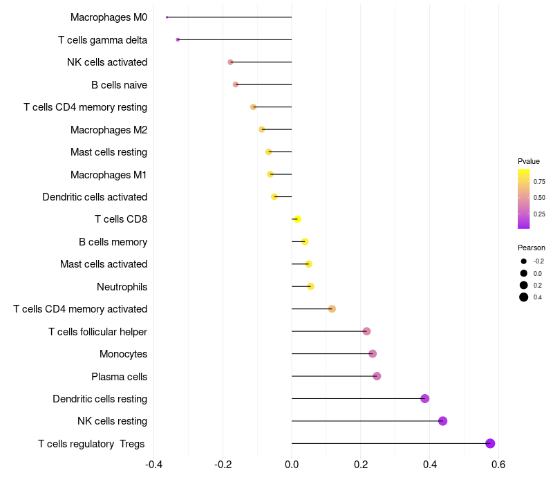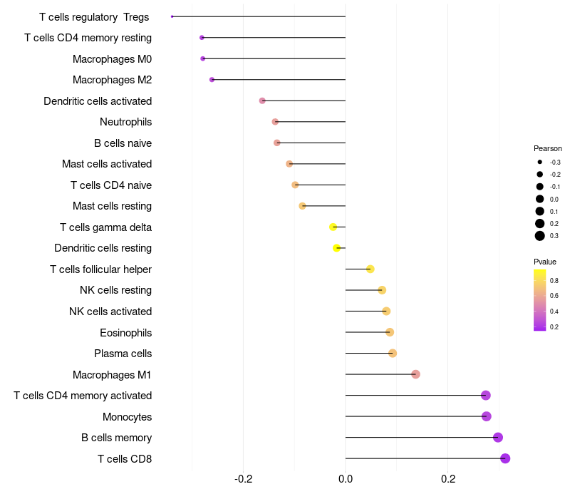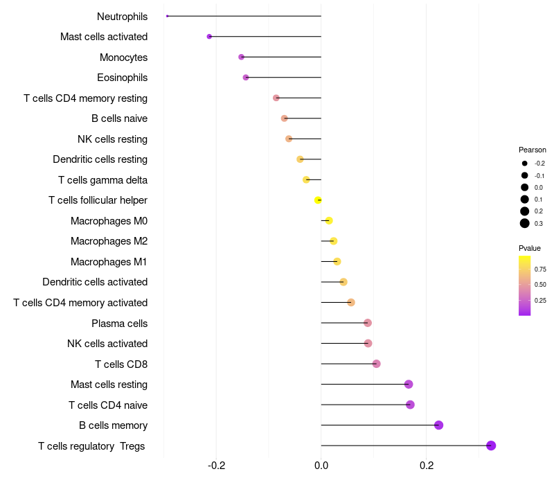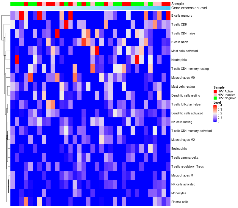 HeatMap of cell type fractions in all samples Lollipop of GABRA5 expression and immune infiltrating cell level correlation result in HPV+ samples