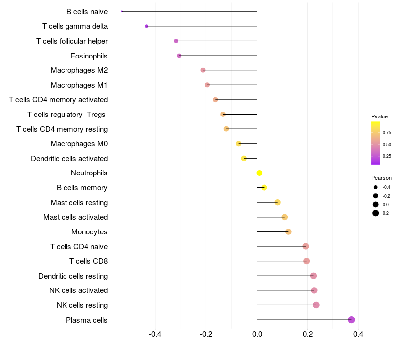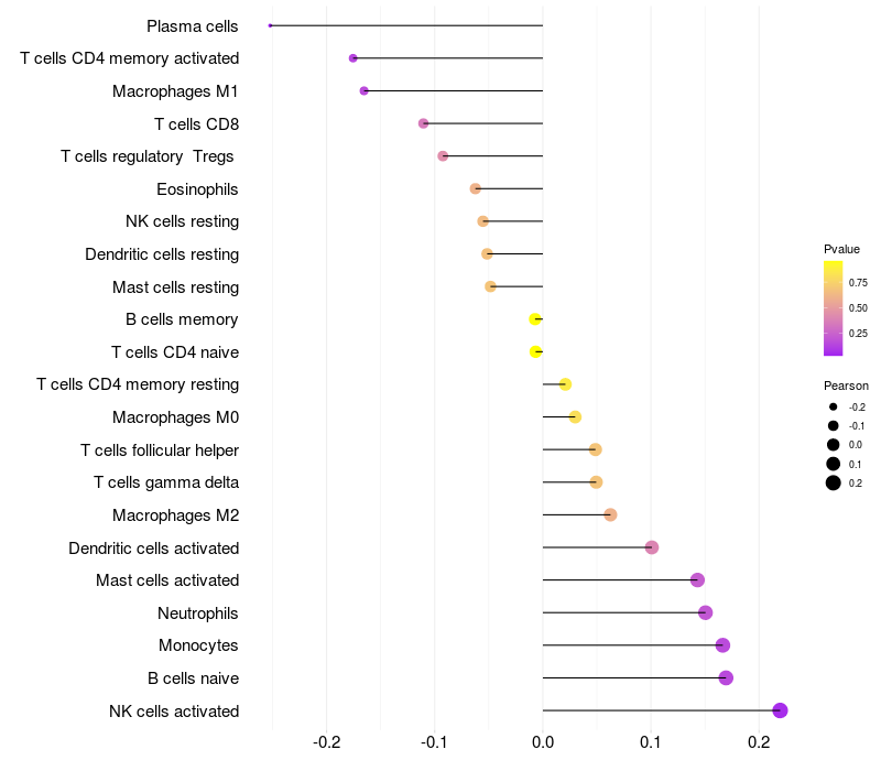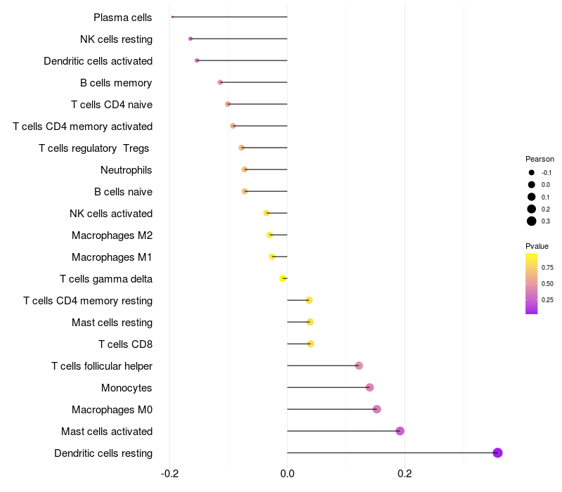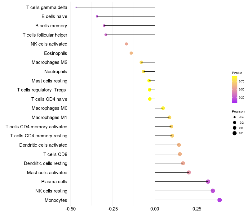 HeatMap of cell type fractions in all samples Lollipop of GALNT9 expression and immune infiltrating cell level correlation result in HPV+ samples