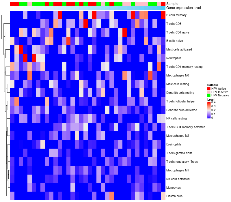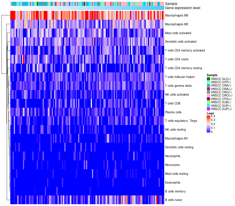 Head and Neck squamous cell carcinoma(HPV-)(483),Head and Neck squamous cell carcinoma(HPV+)(39),Paracancerous(HPV-)(44) |