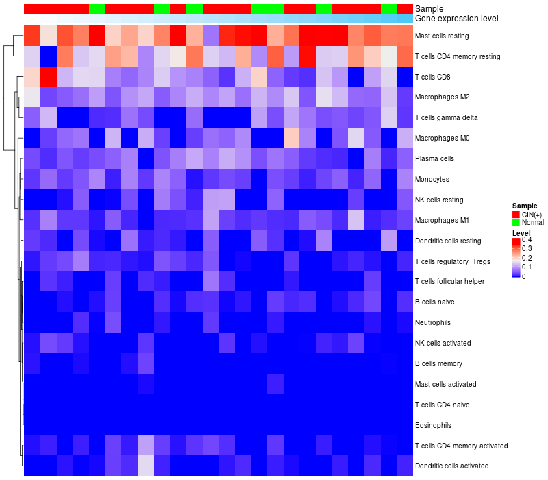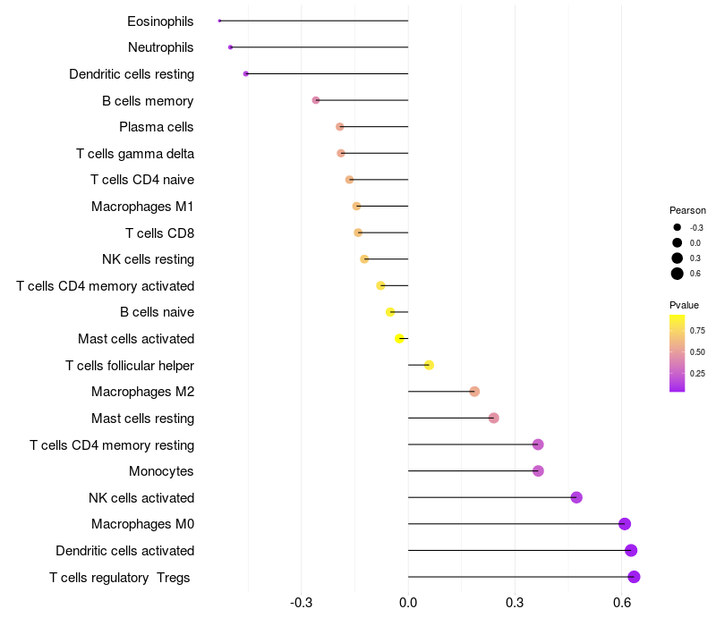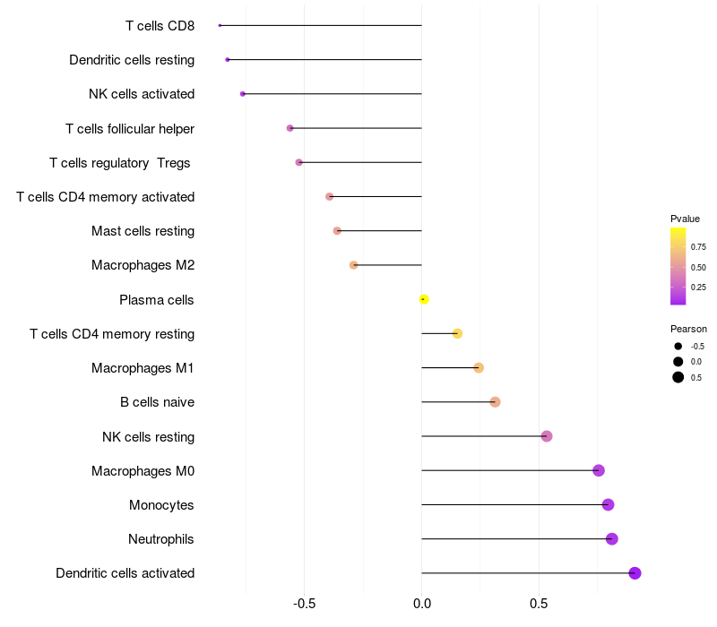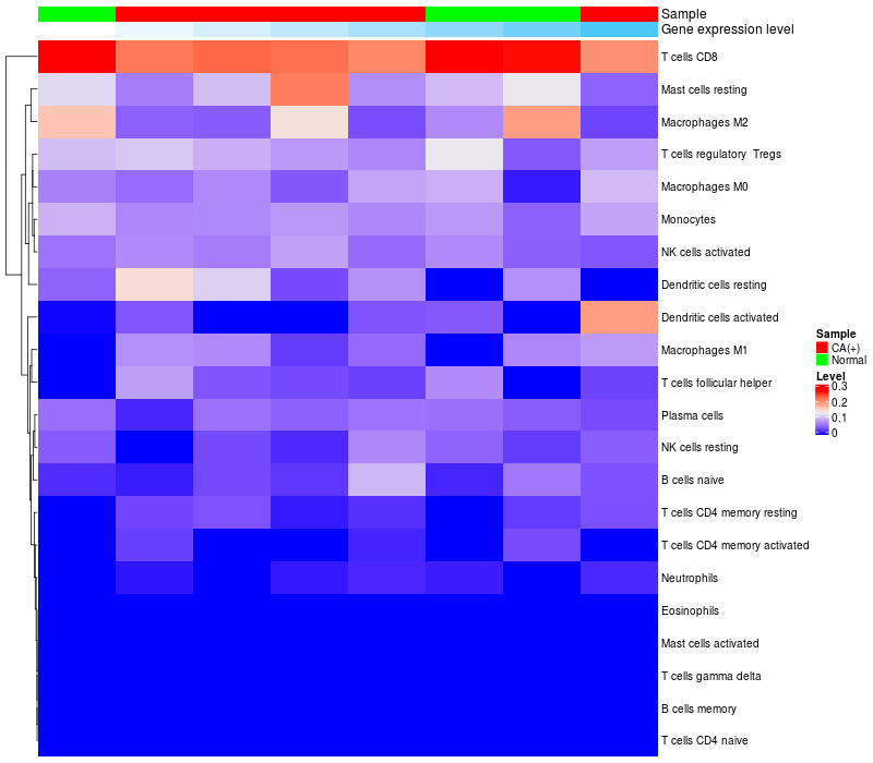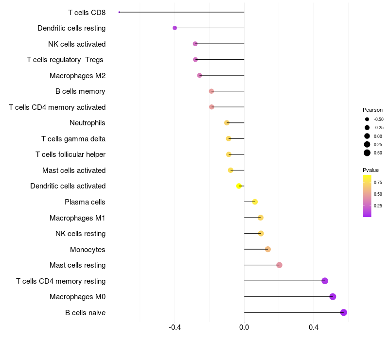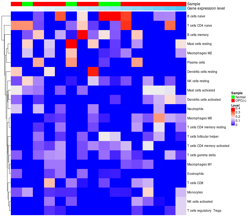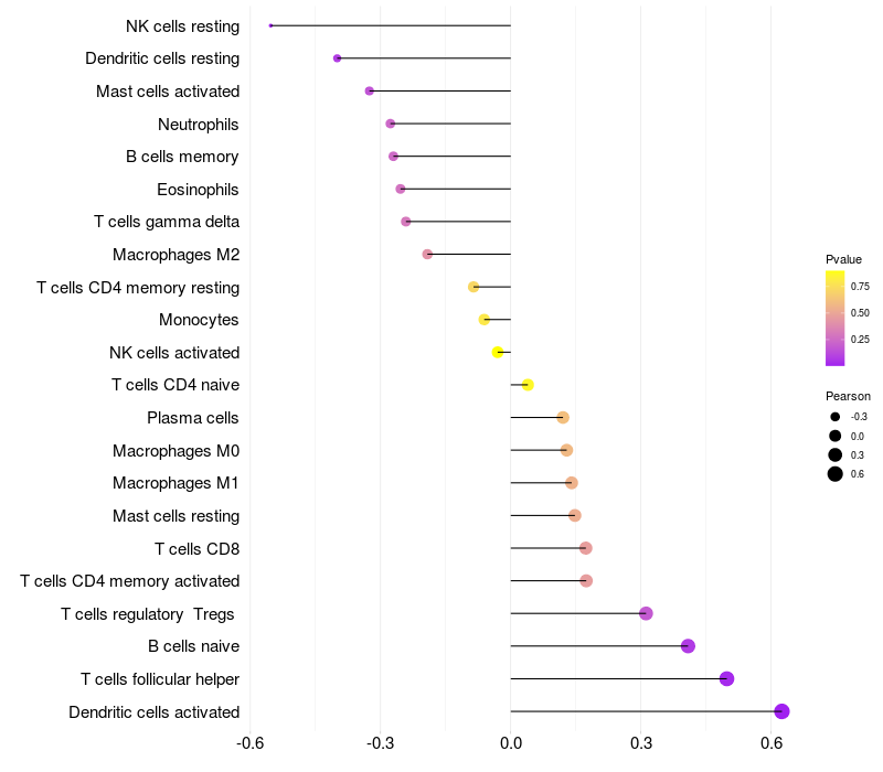 Relationship between gene expression and immune infiltrating cell level