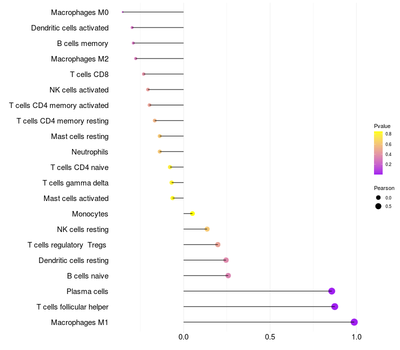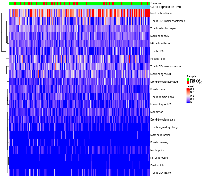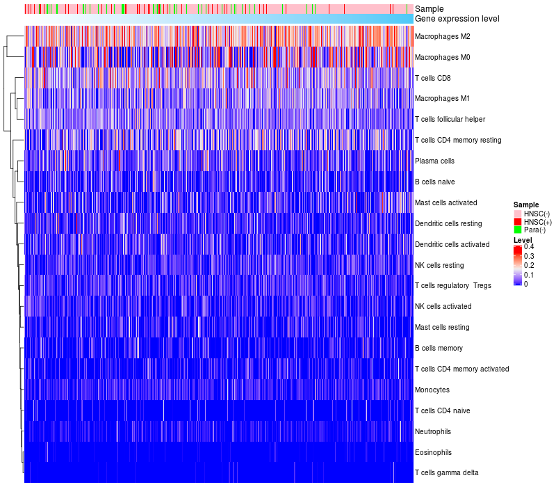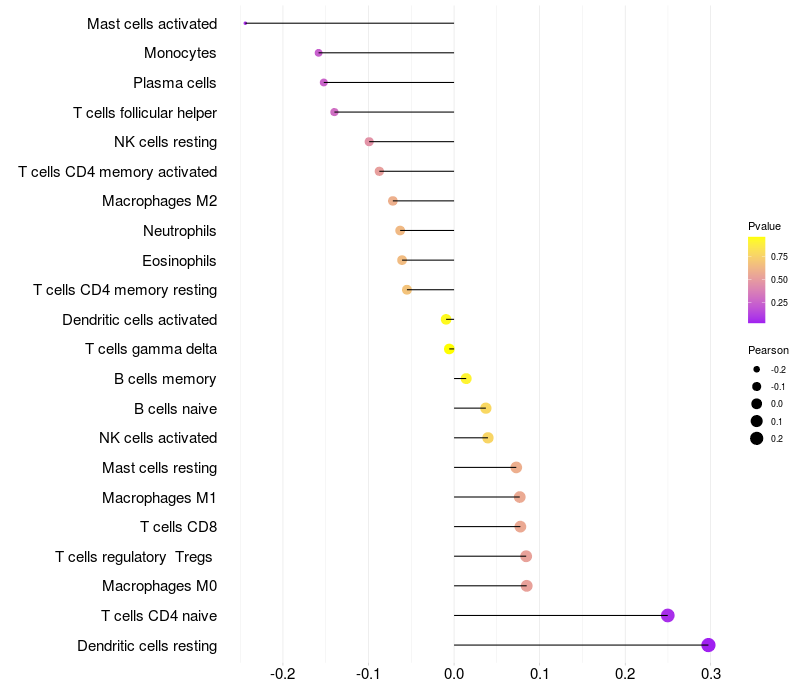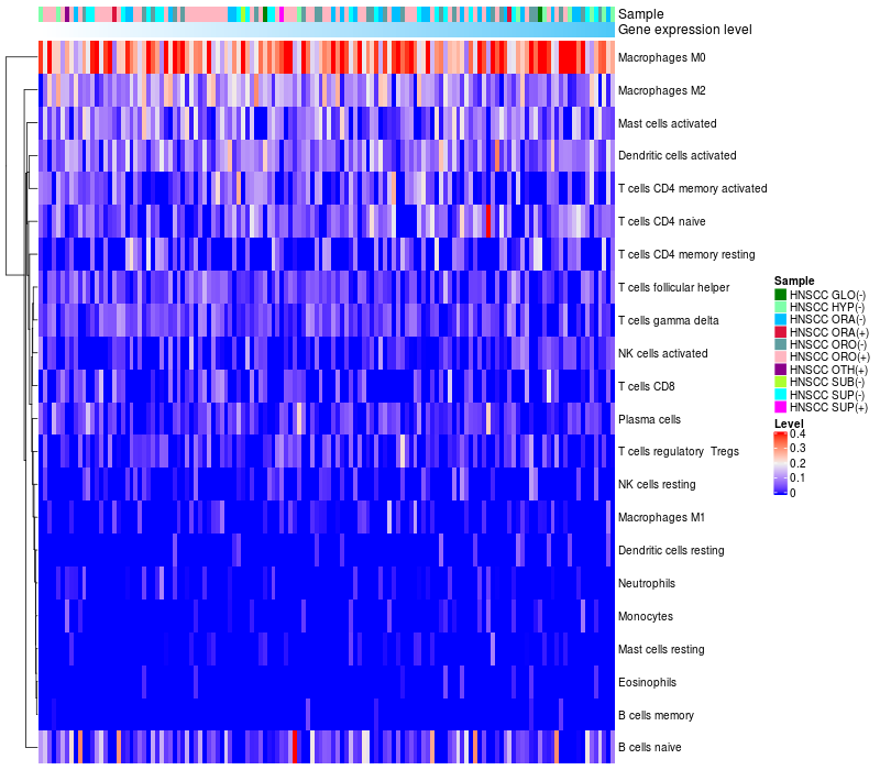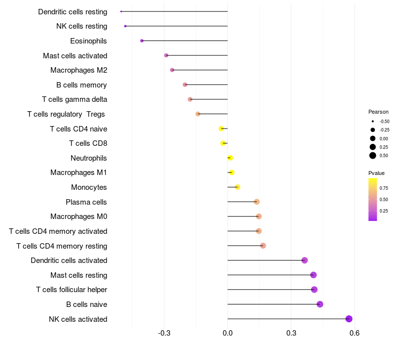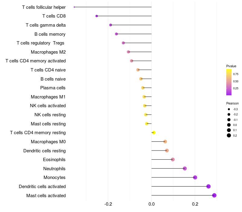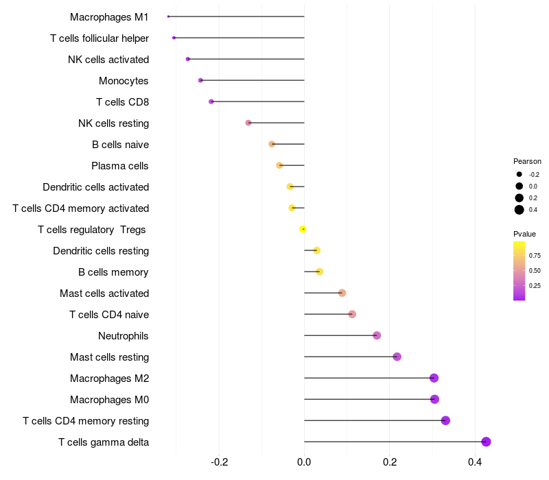 Relationship between gene expression and immune infiltrating cell level