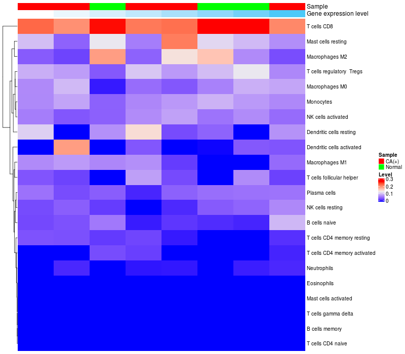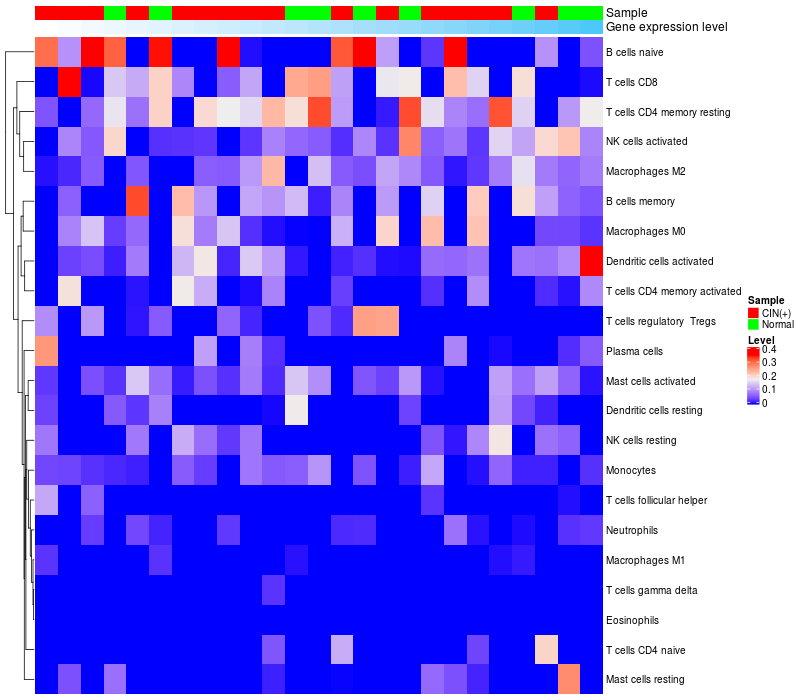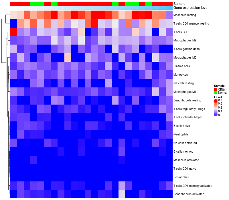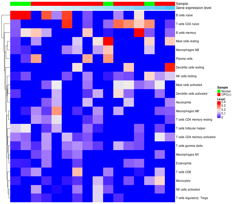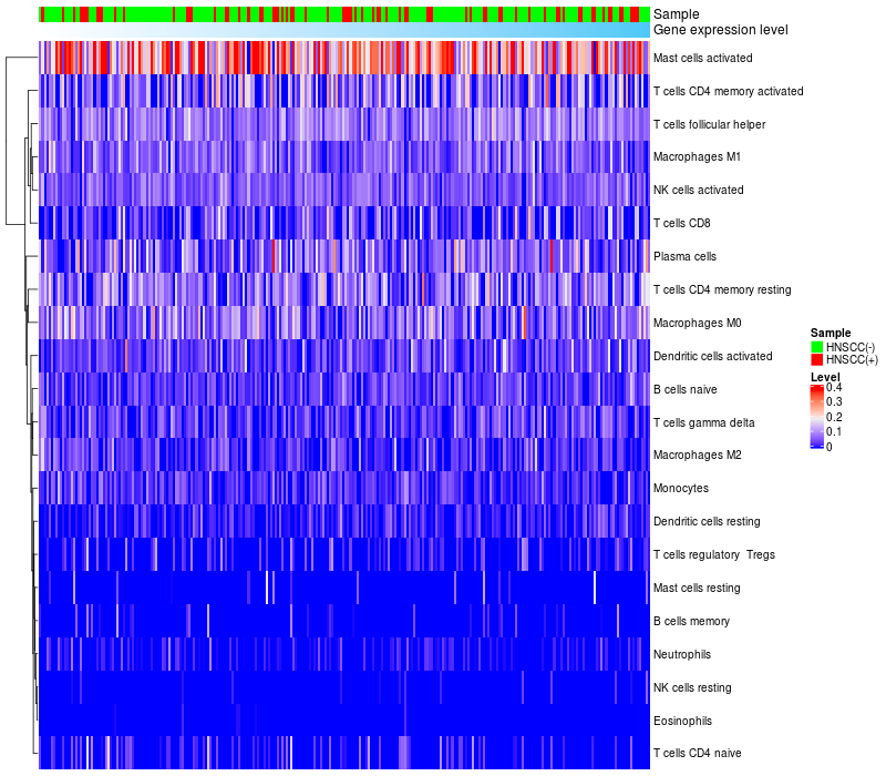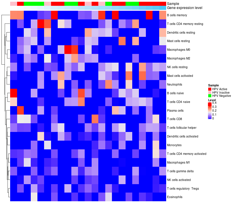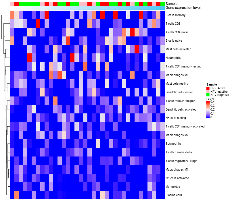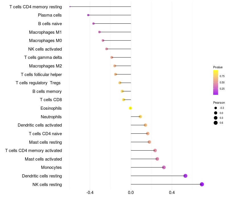 Lollipop of GRTP1 expression and immune infiltrating cell level correlation result in HPV+ samples