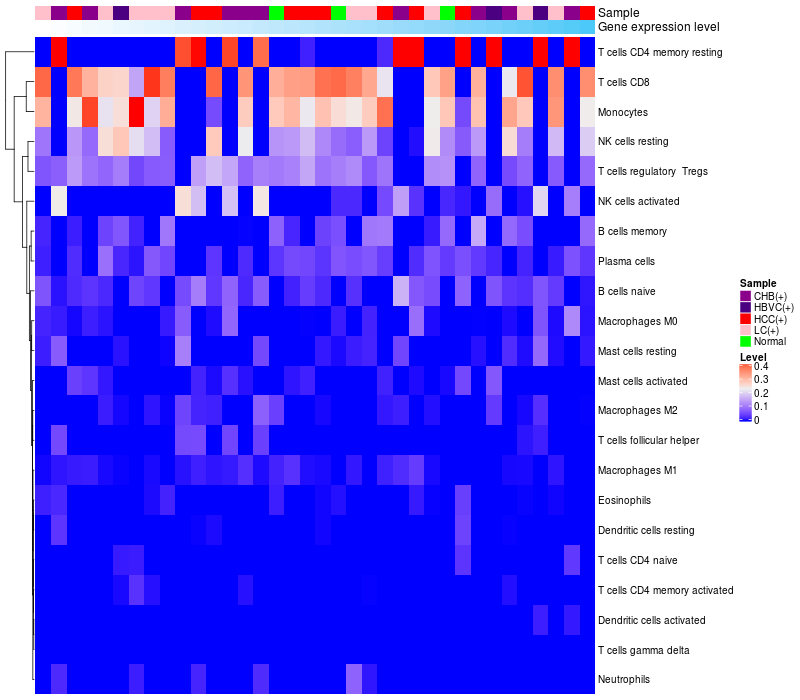 Liver hepatocellular carcinoma HCV (HBV+)(86), Liver hepatocellular carcinoma HCV (HBV-)(19), Liver hepatocellular carcinoma (HBV+)(209), Liver hepatocellular carcinoma (HBV+)(60), Paracancerous HCV (HBV+)(4), Paracancerous (HBV-)(28), Paracancerous (HBV+)(18) |