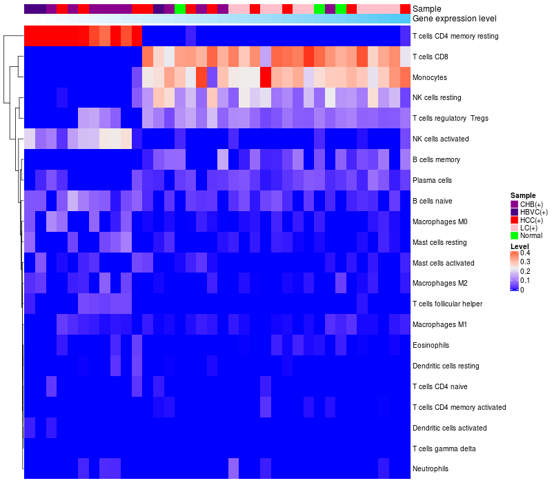 Liver hepatocellular carcinoma HCV (HBV+)(86), Liver hepatocellular carcinoma HCV (HBV-)(19), Liver hepatocellular carcinoma (HBV+)(209), Liver hepatocellular carcinoma (HBV+)(60), Paracancerous HCV (HBV+)(4), Paracancerous (HBV-)(28), Paracancerous (HBV+)(18) |