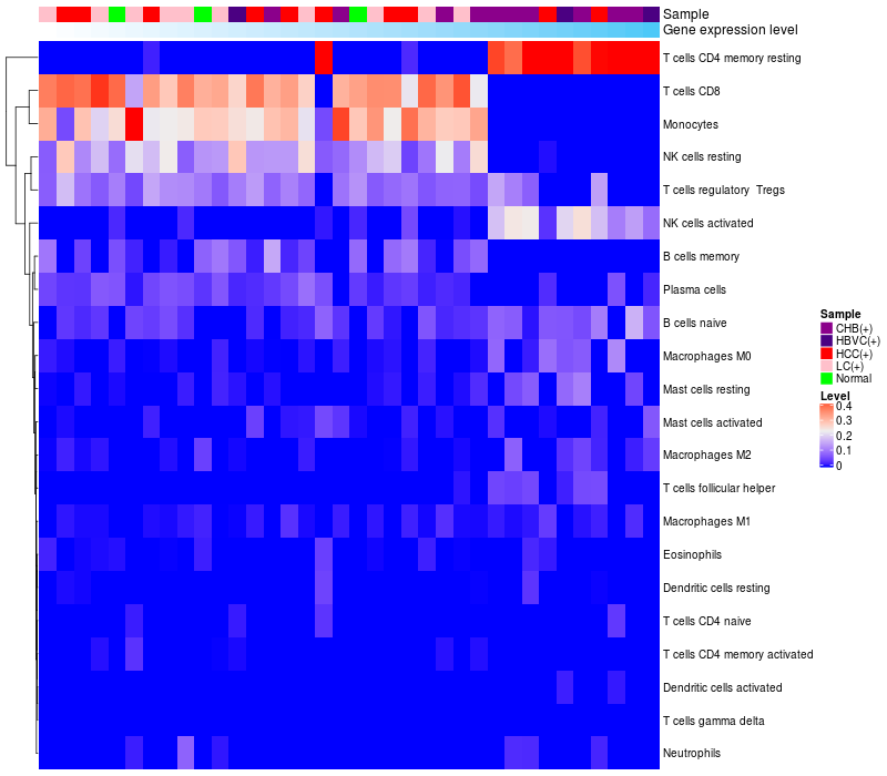 Liver hepatocellular carcinoma HCV (HBV+)(86), Liver hepatocellular carcinoma HCV (HBV-)(19), Liver hepatocellular carcinoma (HBV+)(209), Liver hepatocellular carcinoma (HBV+)(60), Paracancerous HCV (HBV+)(4), Paracancerous (HBV-)(28), Paracancerous (HBV+)(18) |