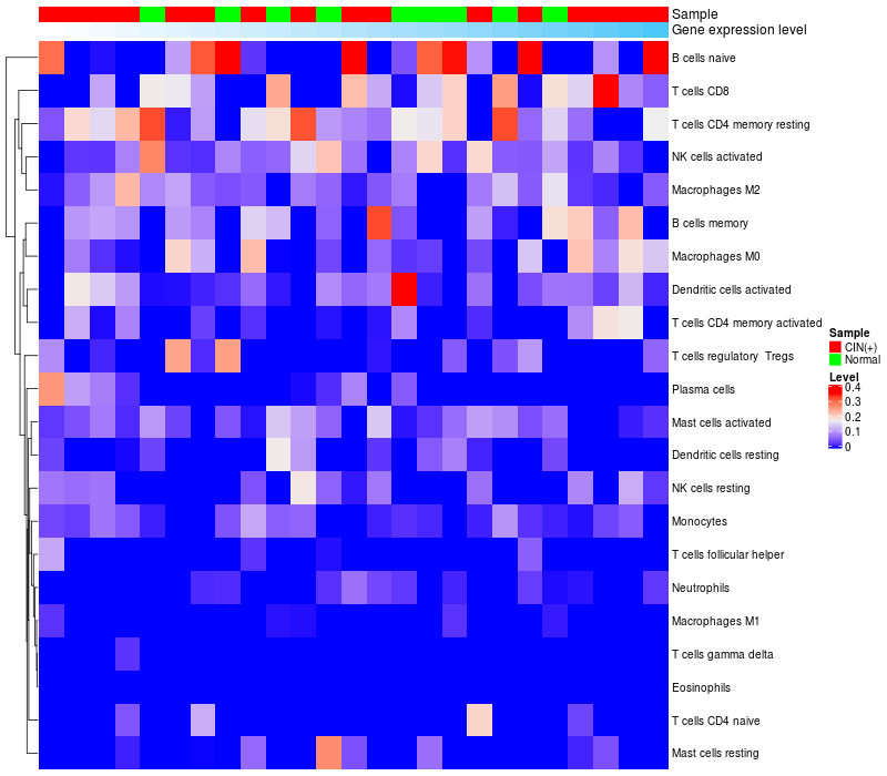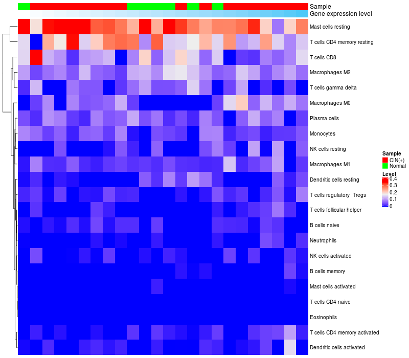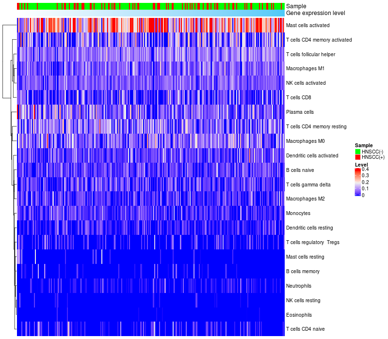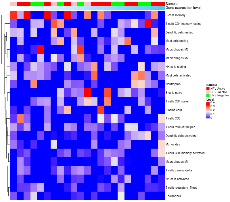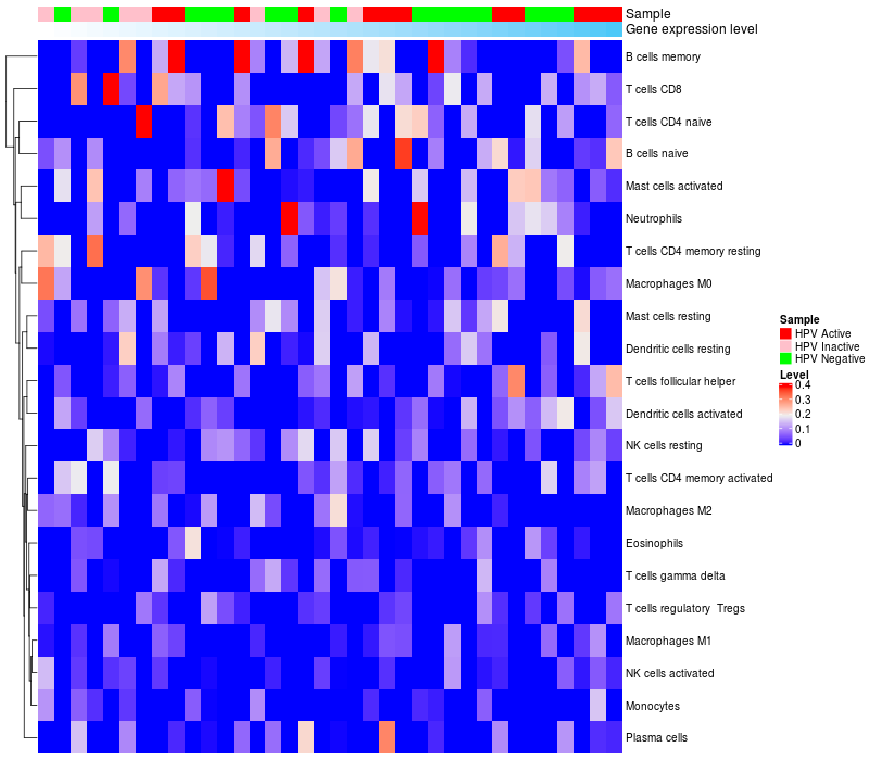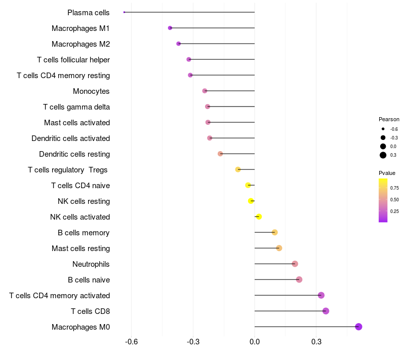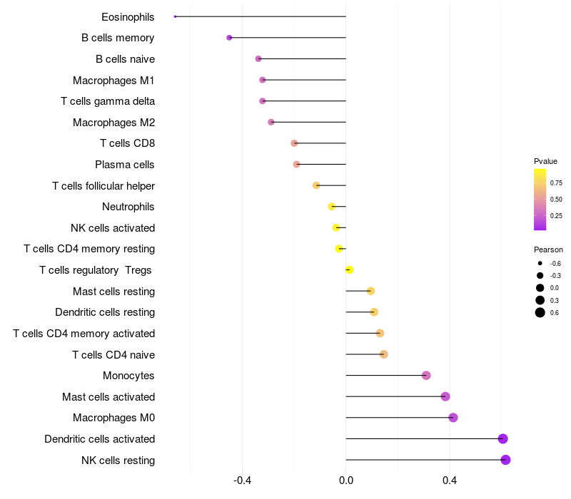 Lollipop of IER5 expression and immune infiltrating cell level correlation result in HPV+ samples