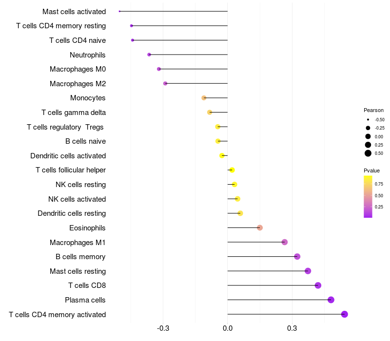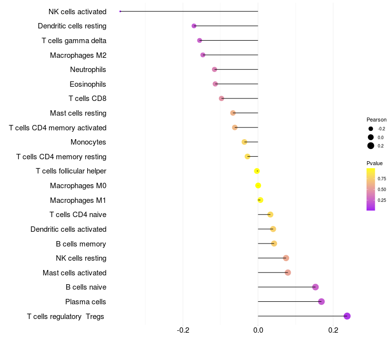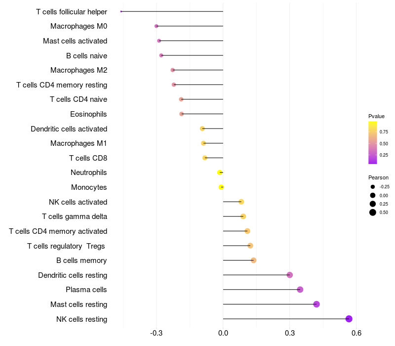 HeatMap of cell type fractions in all samples Lollipop of IFT27 expression and immune infiltrating cell level correlation result in HPV+ samples
