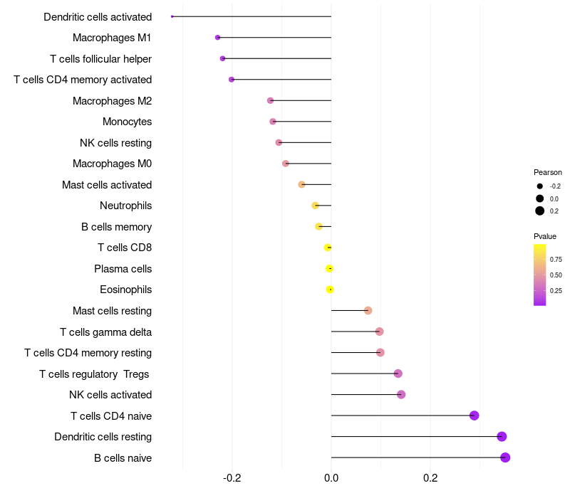 HeatMap of cell type fractions in all samples Lollipop of IGIP expression and immune infiltrating cell level correlation result in HPV+ samples