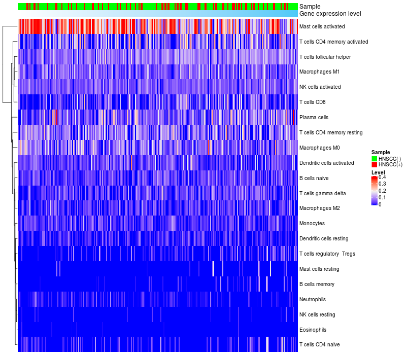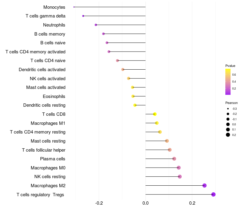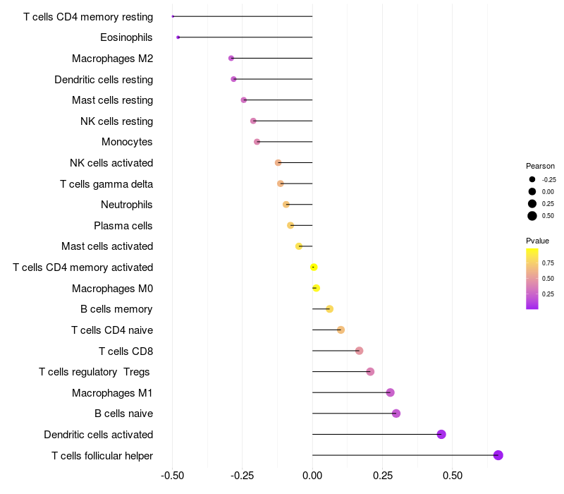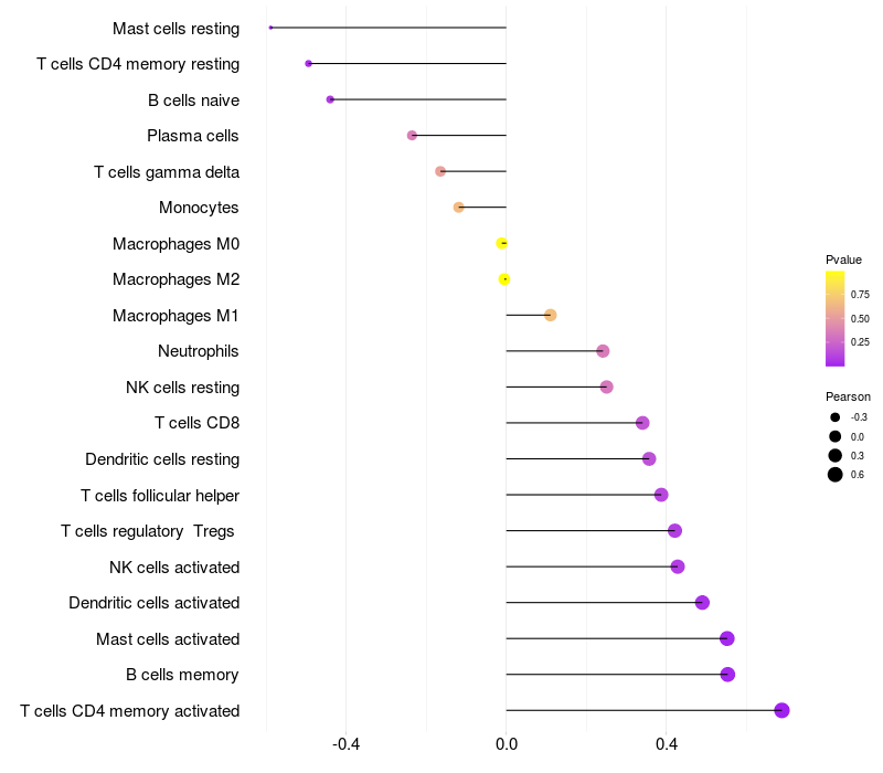 Lollipop of IKBKB expression and immune infiltrating cell level correlation result in HPV+ samples