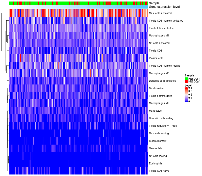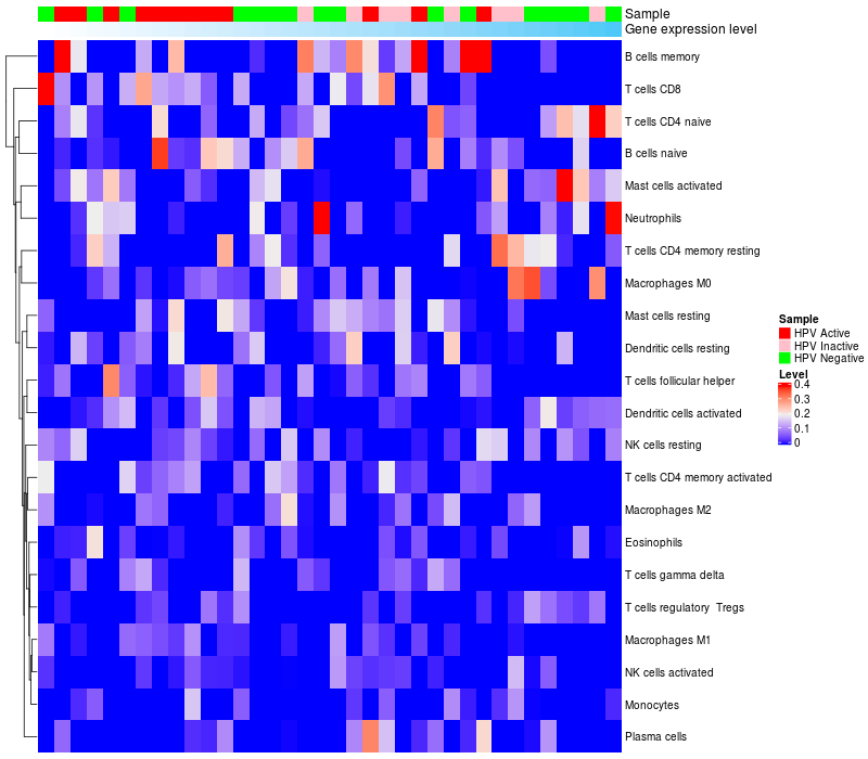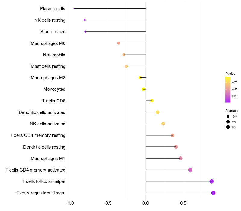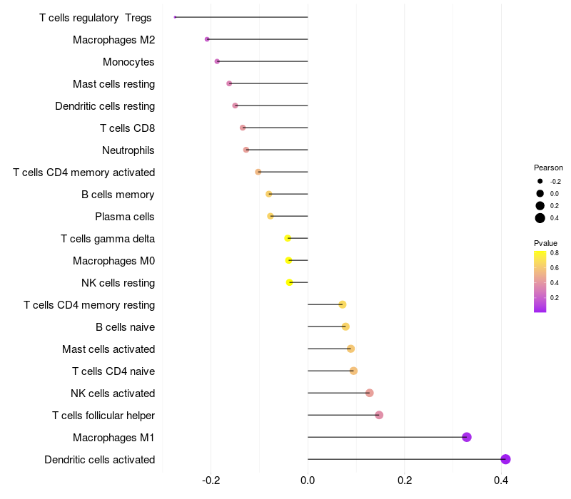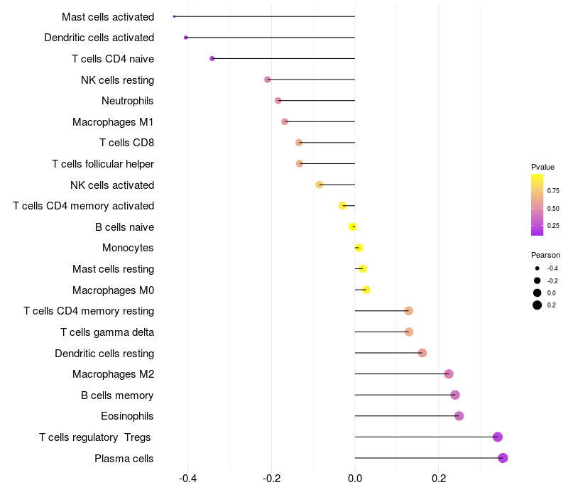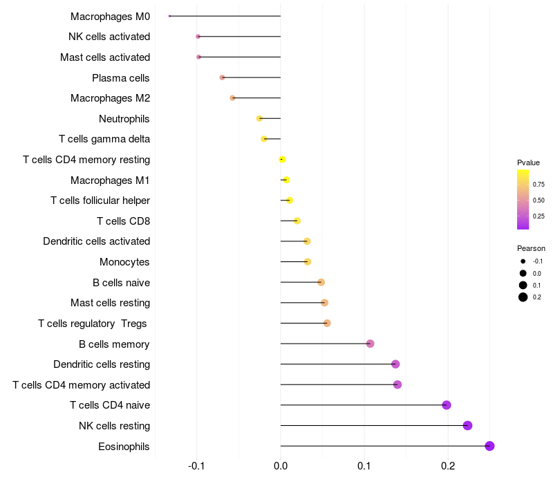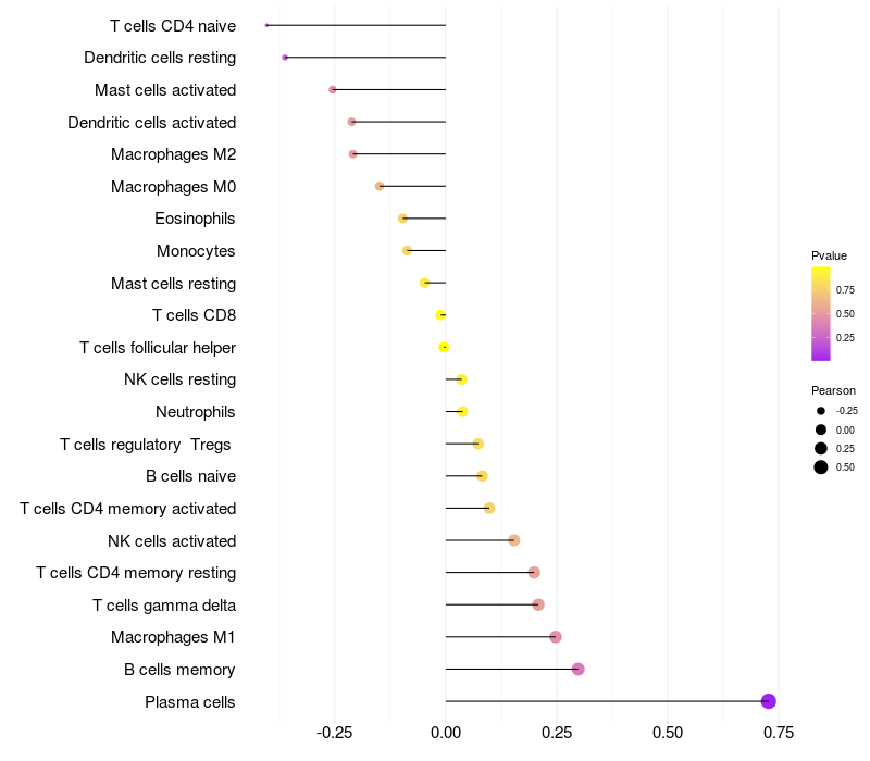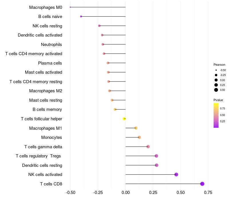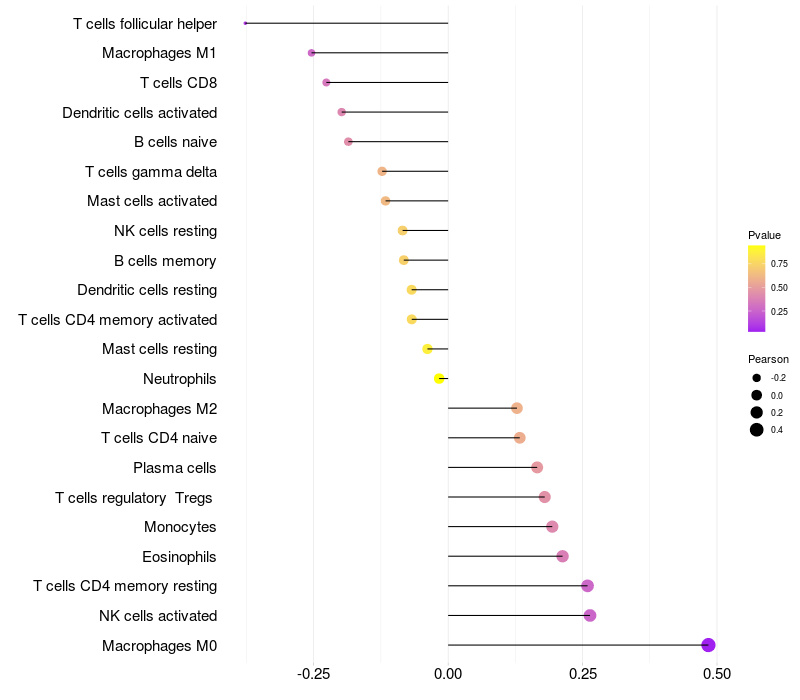 Lollipop of ILDR2 expression and immune infiltrating cell level correlation result in HPV+ samples