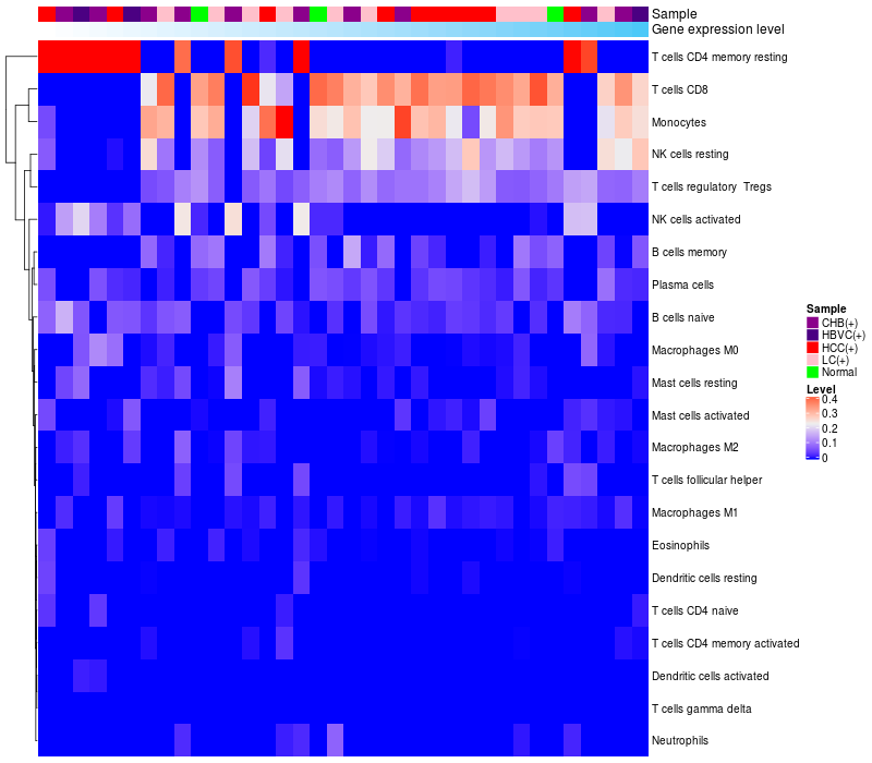 Liver hepatocellular carcinoma HCV (HBV+)(86), Liver hepatocellular carcinoma HCV (HBV-)(19), Liver hepatocellular carcinoma (HBV+)(209), Liver hepatocellular carcinoma (HBV+)(60), Paracancerous HCV (HBV+)(4), Paracancerous (HBV-)(28), Paracancerous (HBV+)(18) |