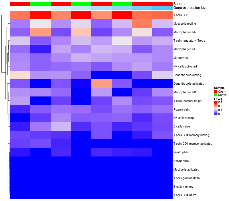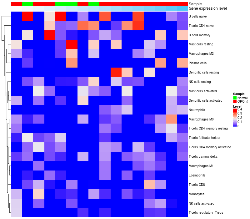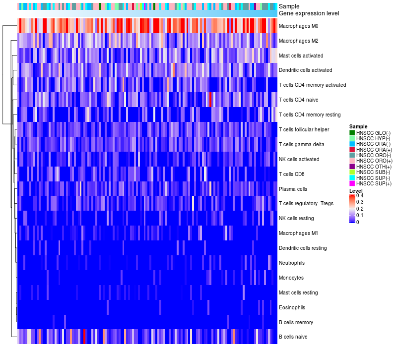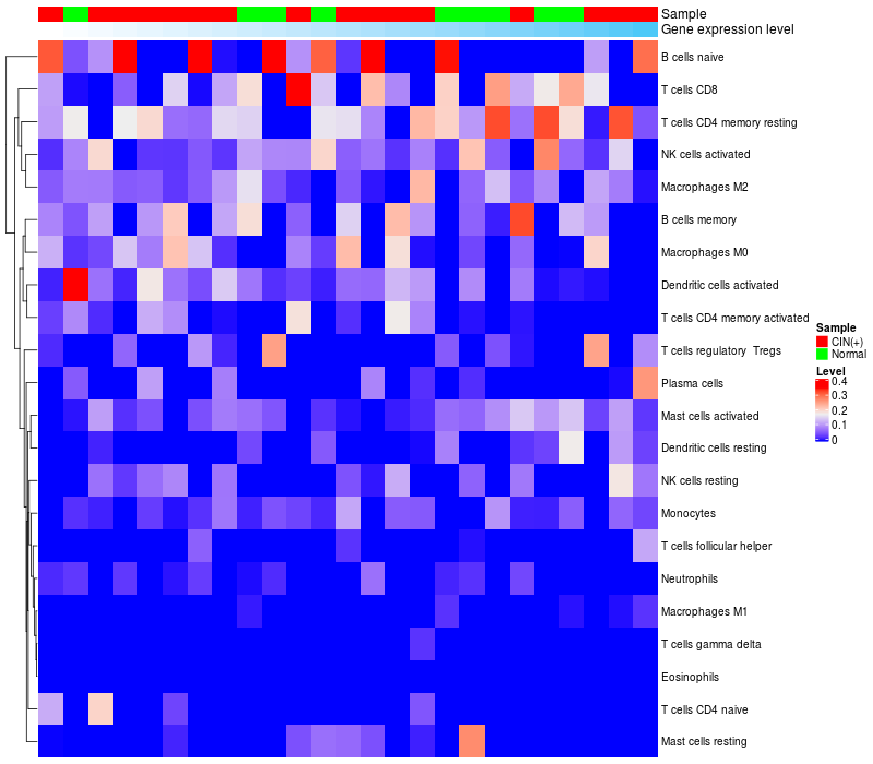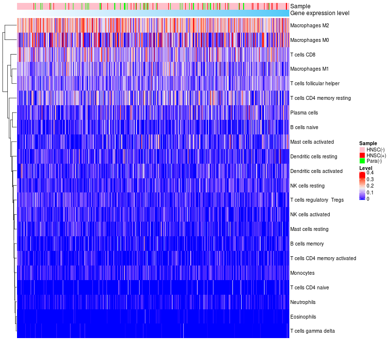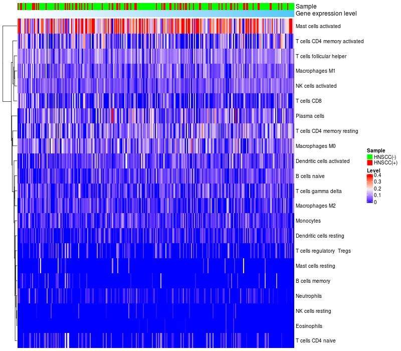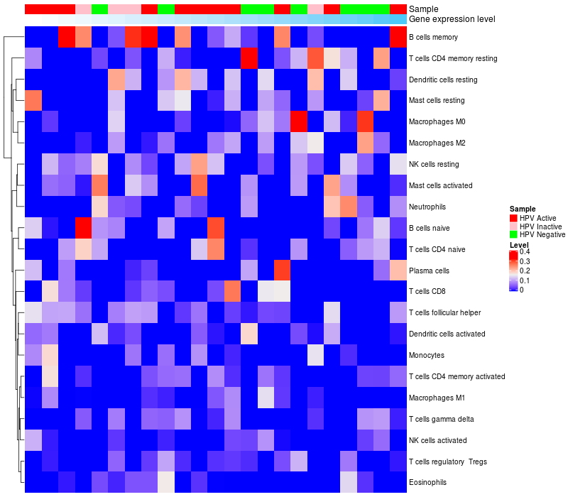 Lollipop of INTU expression and immune infiltrating cell level correlation result in HPV+ samples