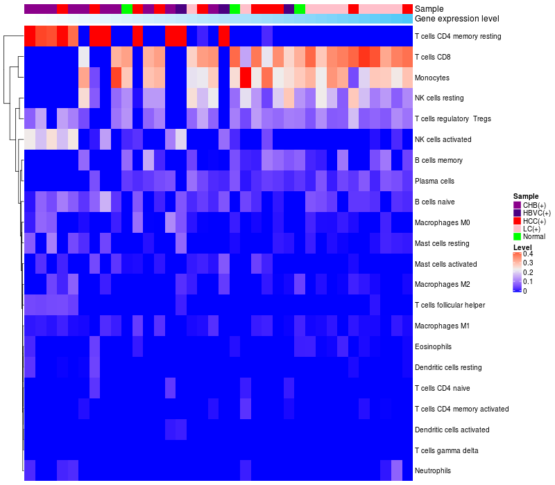 Liver hepatocellular carcinoma HCV (HBV+)(86), Liver hepatocellular carcinoma HCV (HBV-)(19), Liver hepatocellular carcinoma (HBV+)(209), Liver hepatocellular carcinoma (HBV+)(60), Paracancerous HCV (HBV+)(4), Paracancerous (HBV-)(28), Paracancerous (HBV+)(18) |