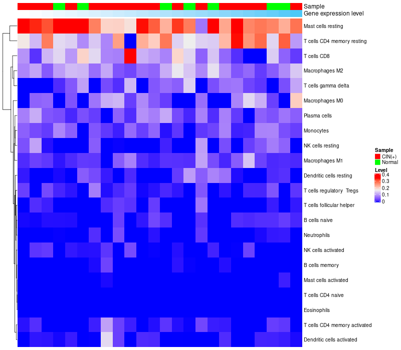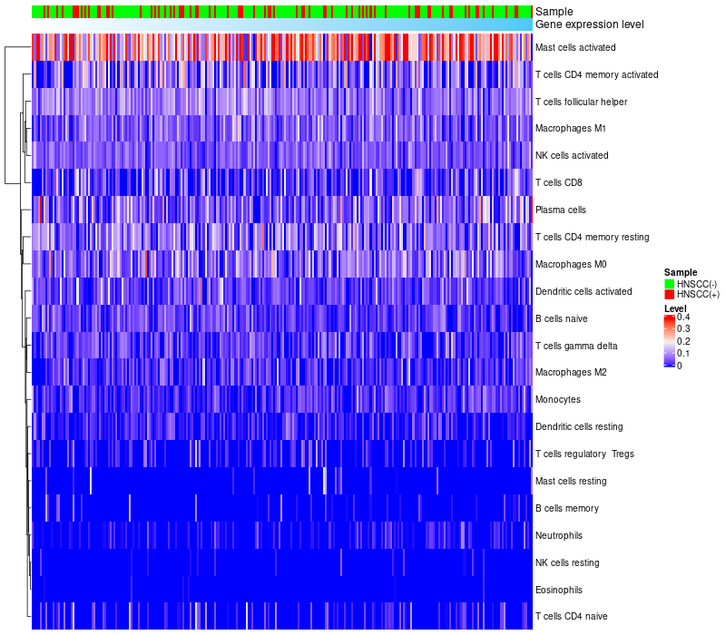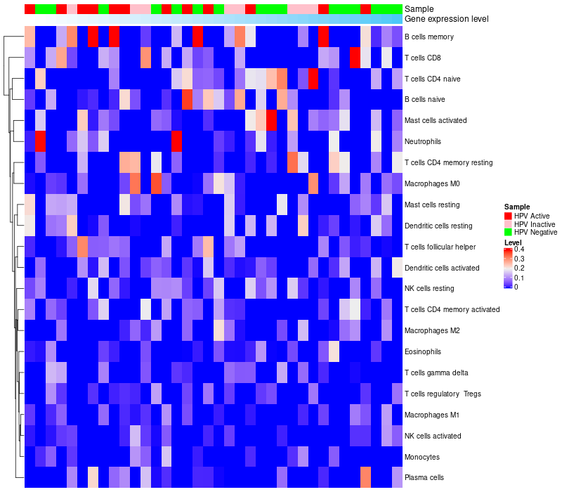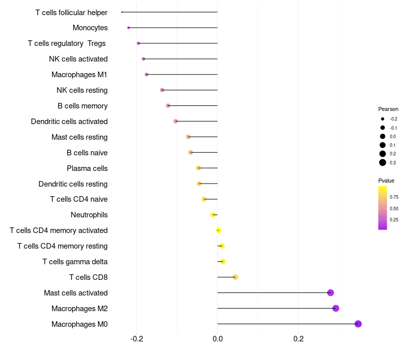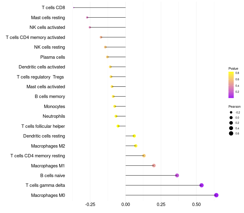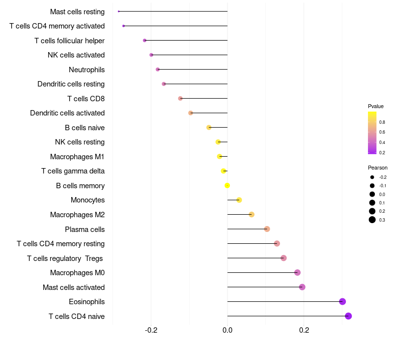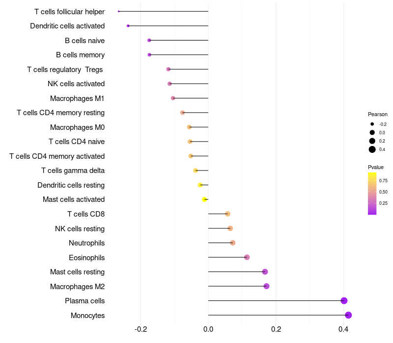 Lollipop of IRX1 expression and immune infiltrating cell level correlation result in HPV+ samples