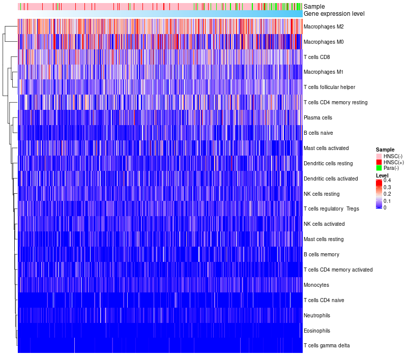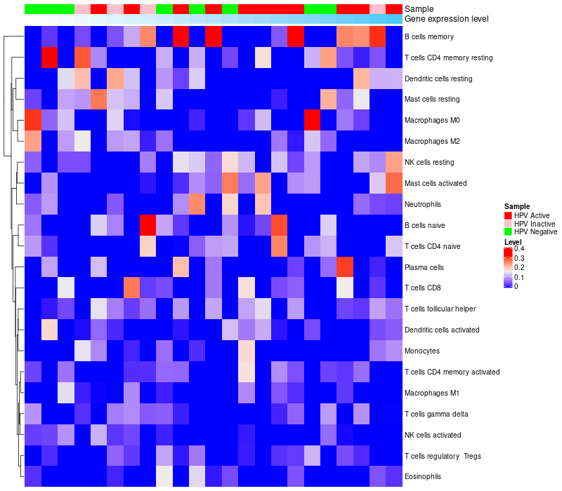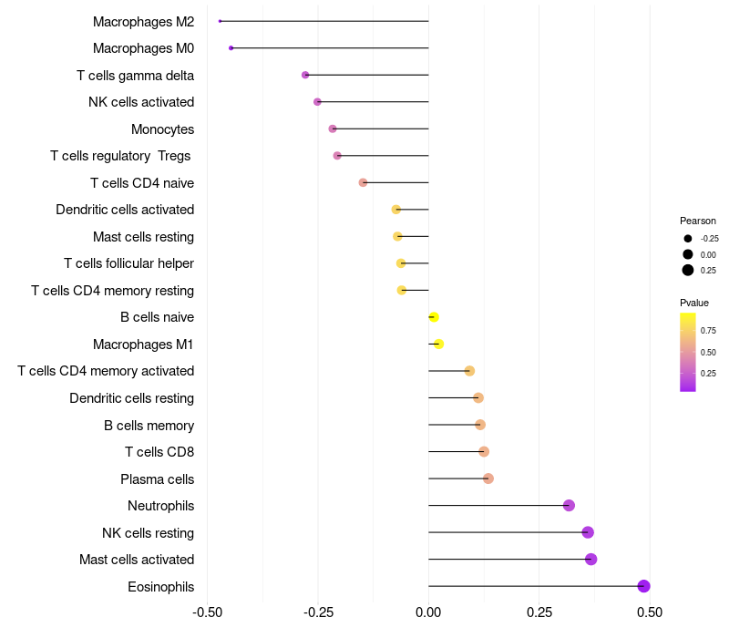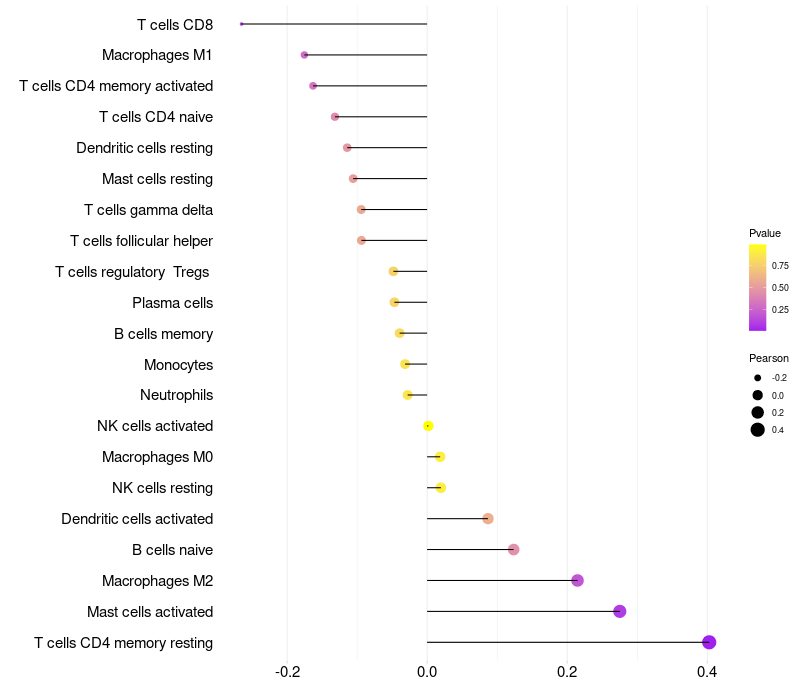 Lollipop of IYD expression and immune infiltrating cell level correlation result in HPV+ samples