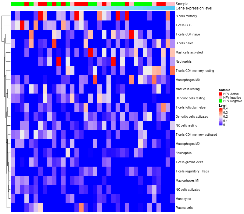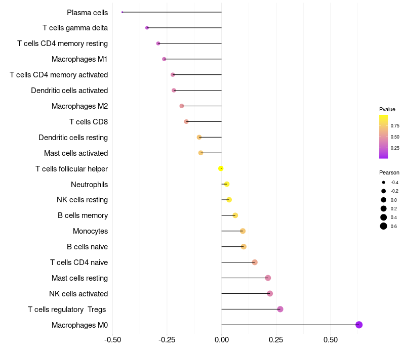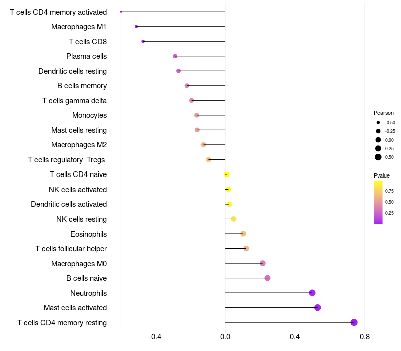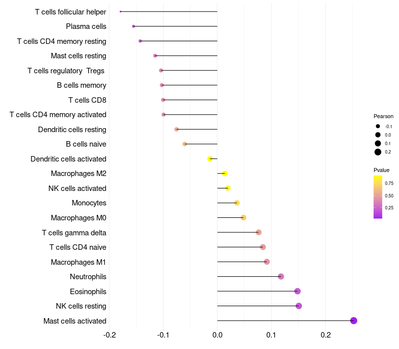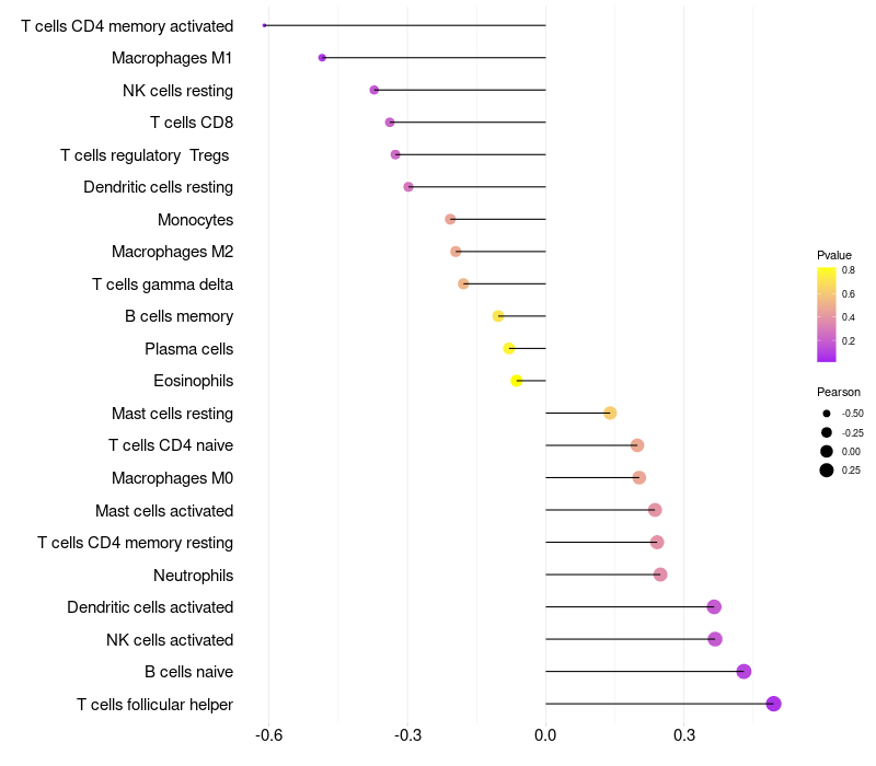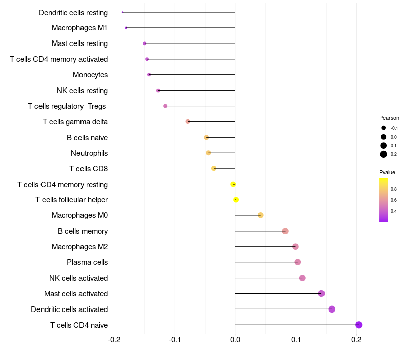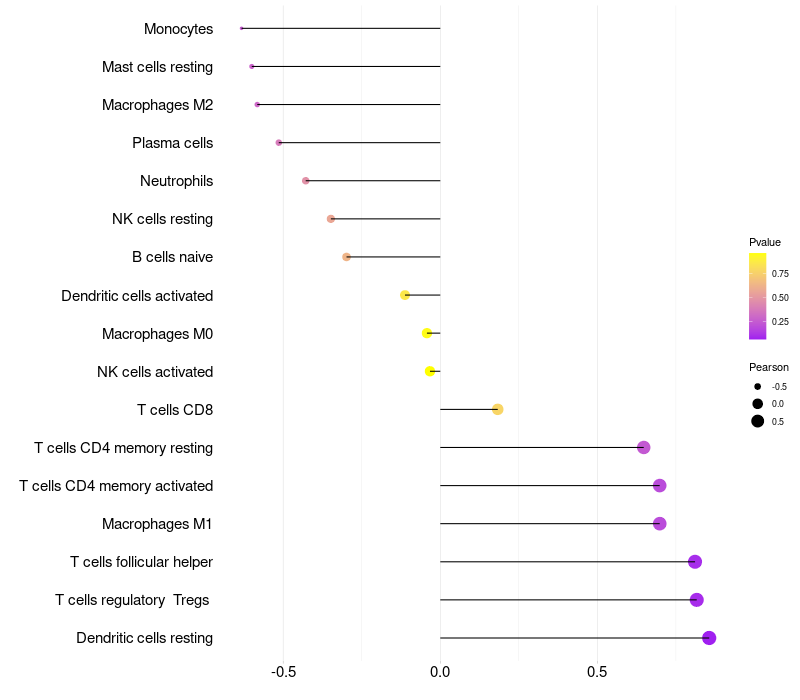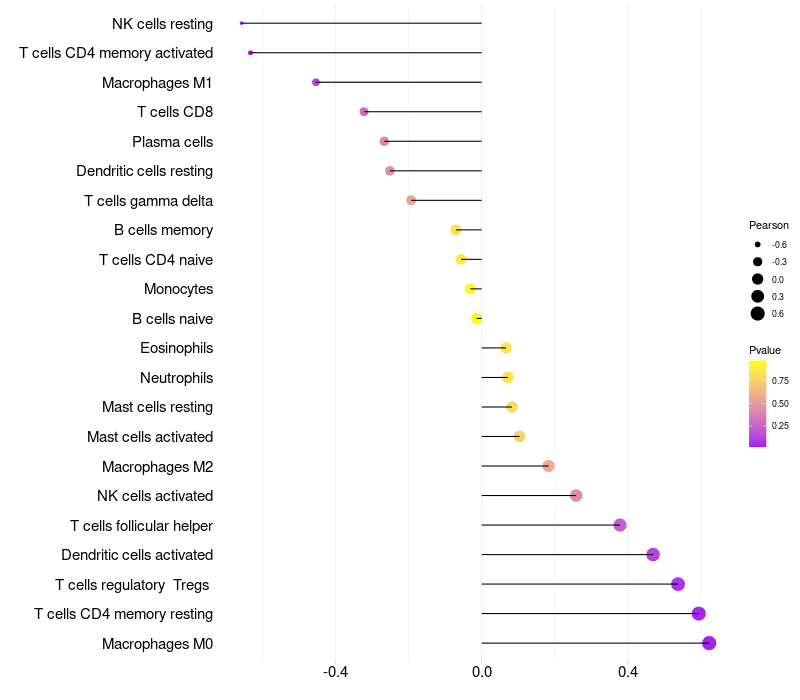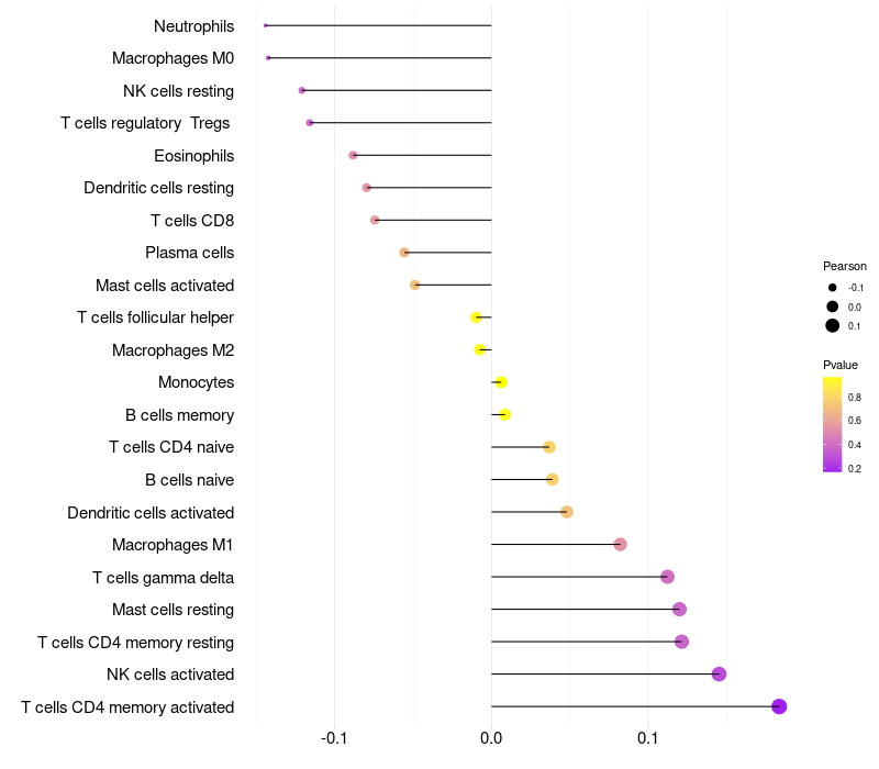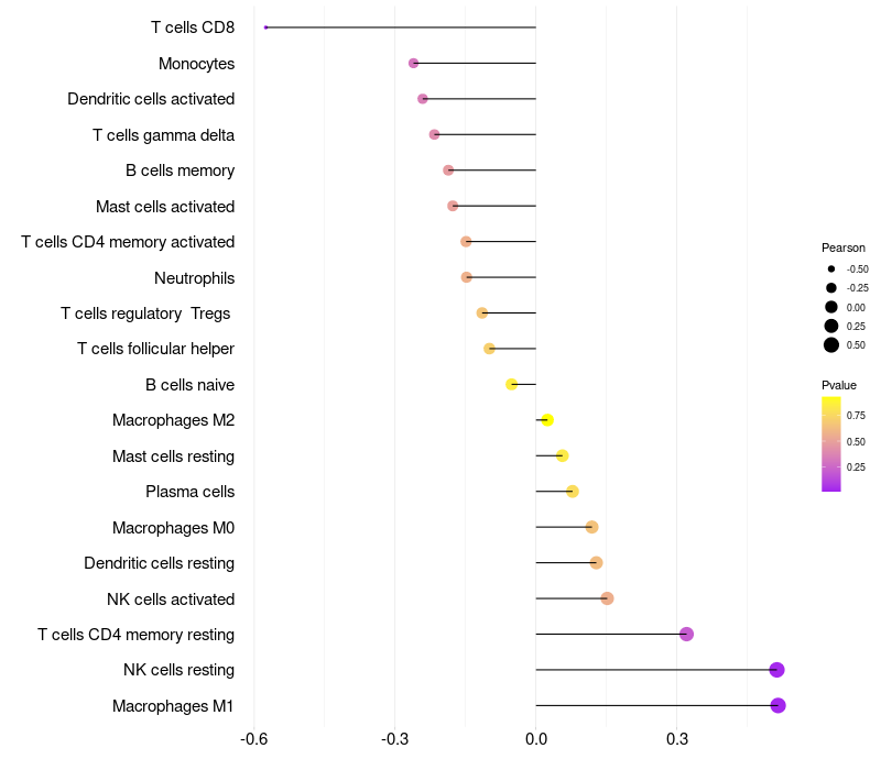Lollipop of KCNG1 expression and immune infiltrating cell level correlation result in HPV+ samples