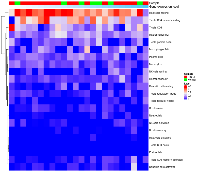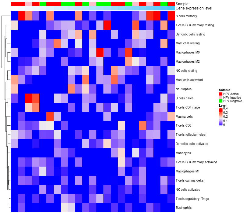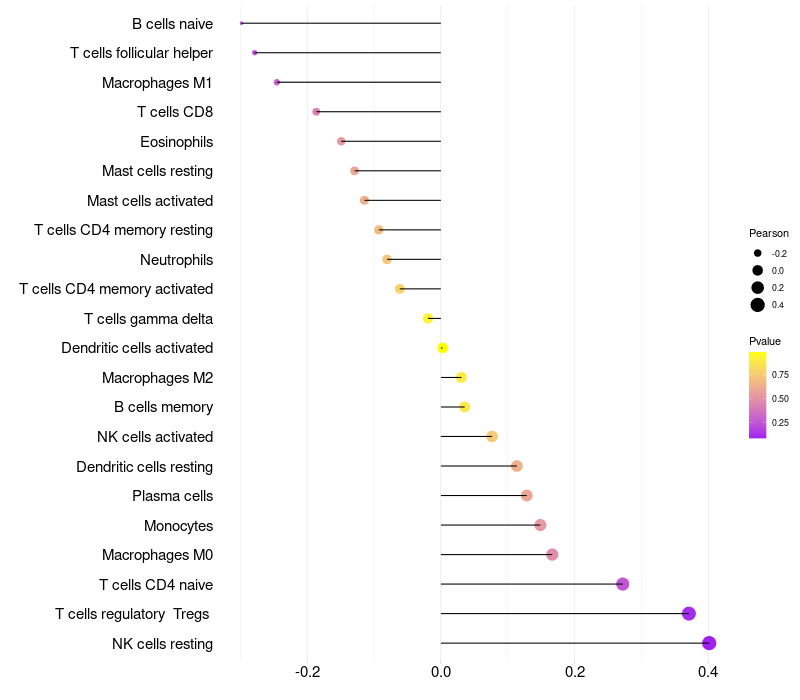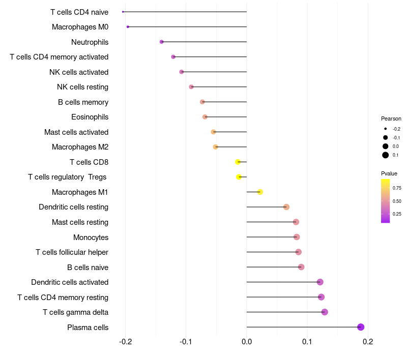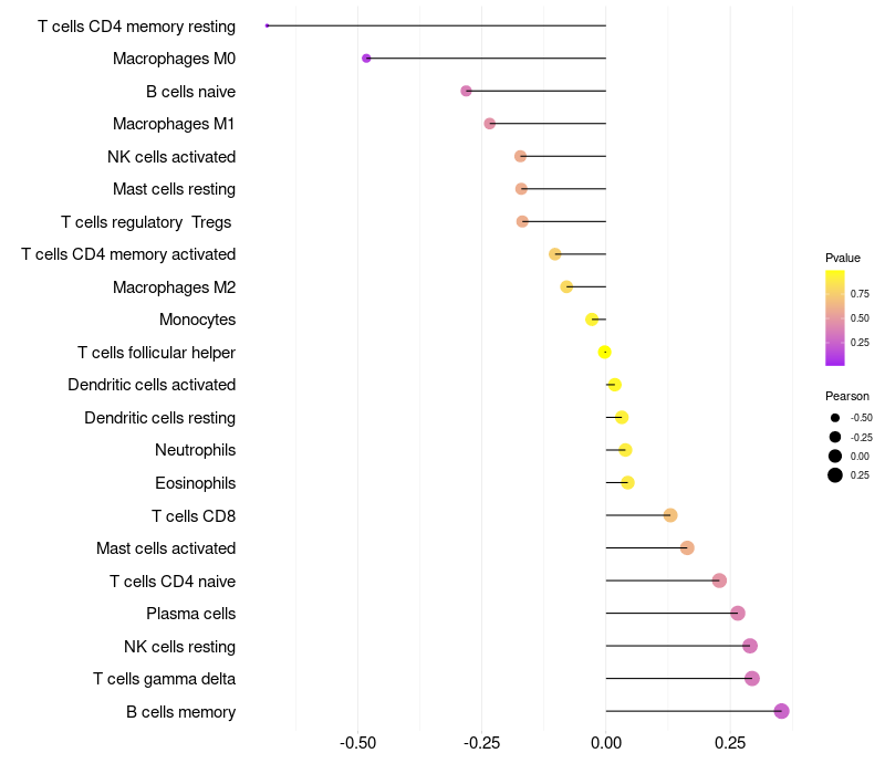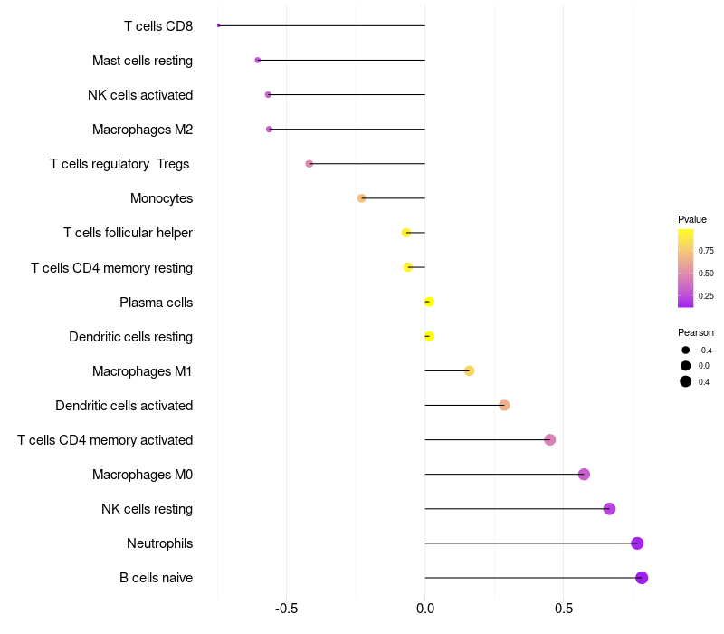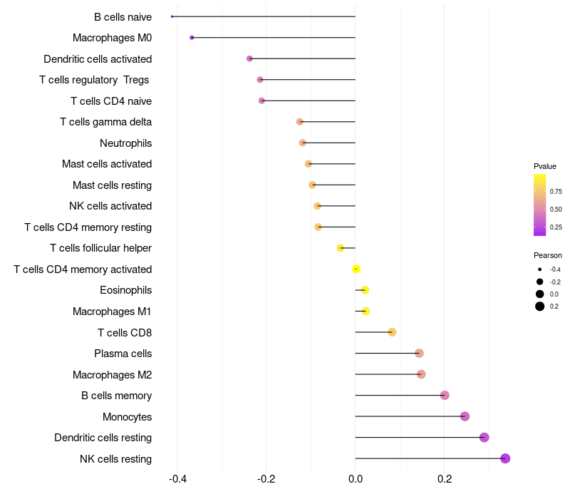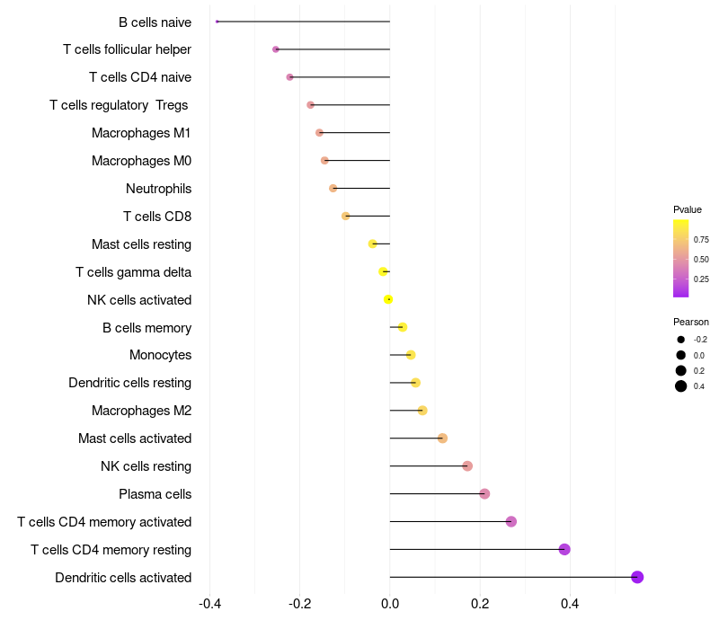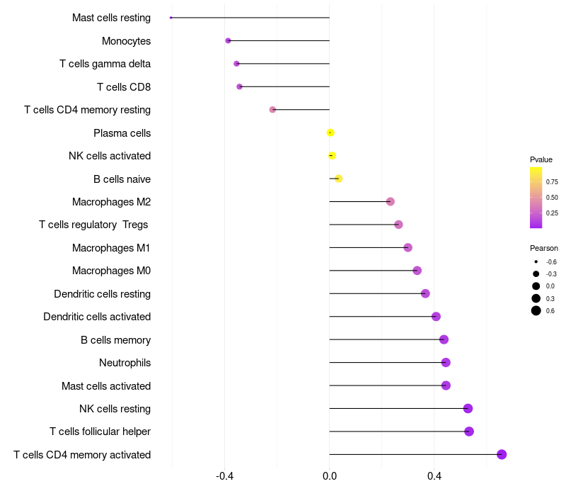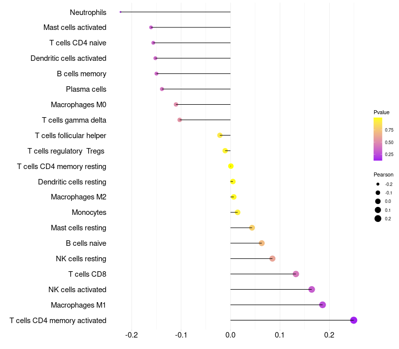Lollipop of KCNJ2 expression and immune infiltrating cell level correlation result in HPV+ samples