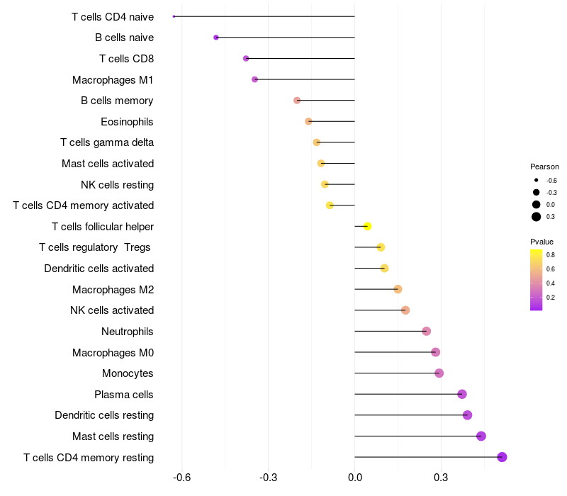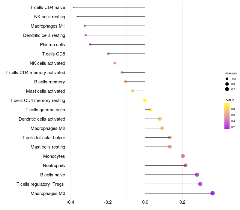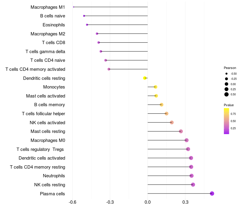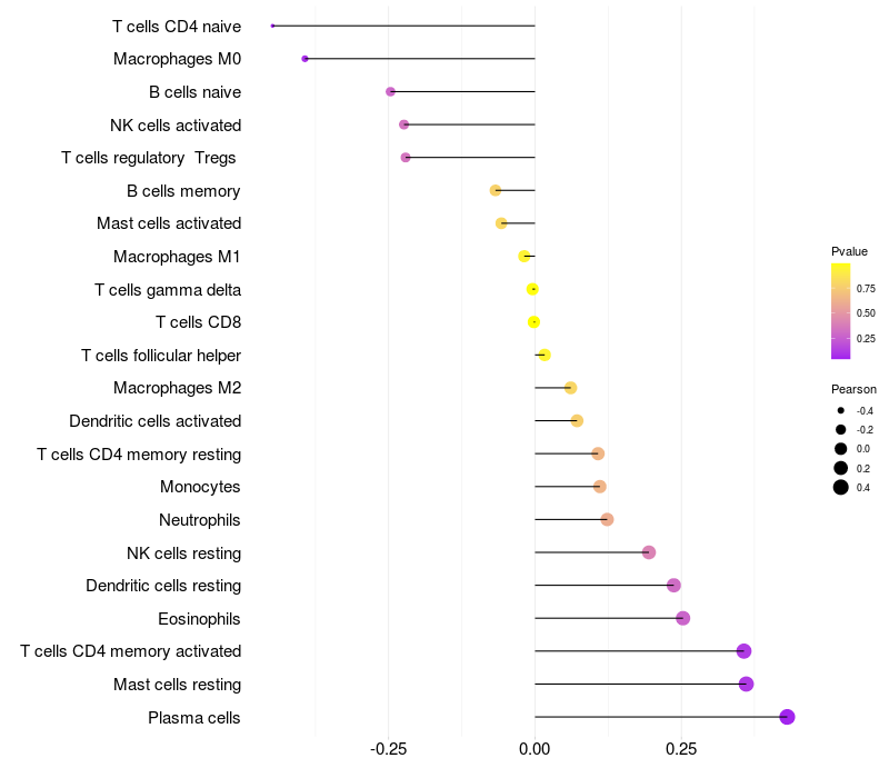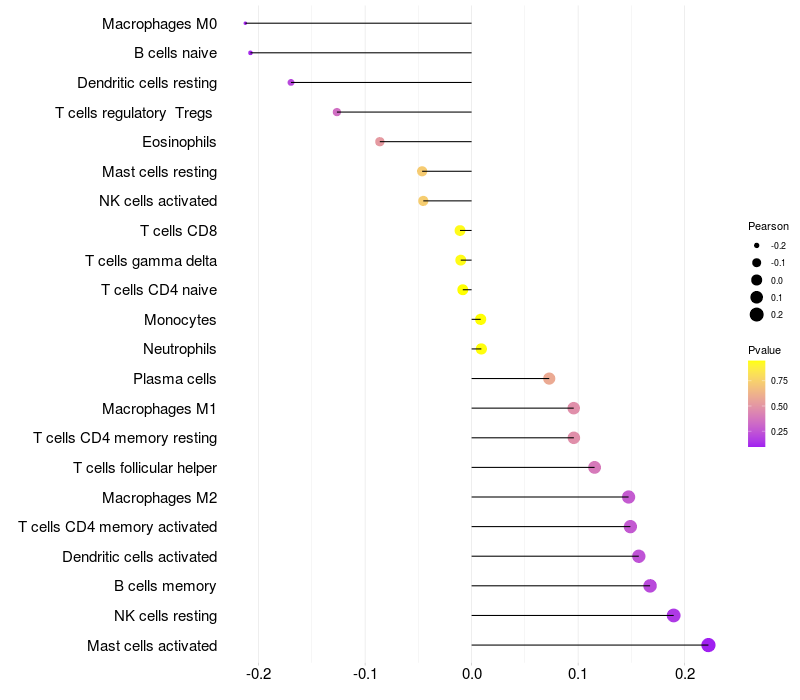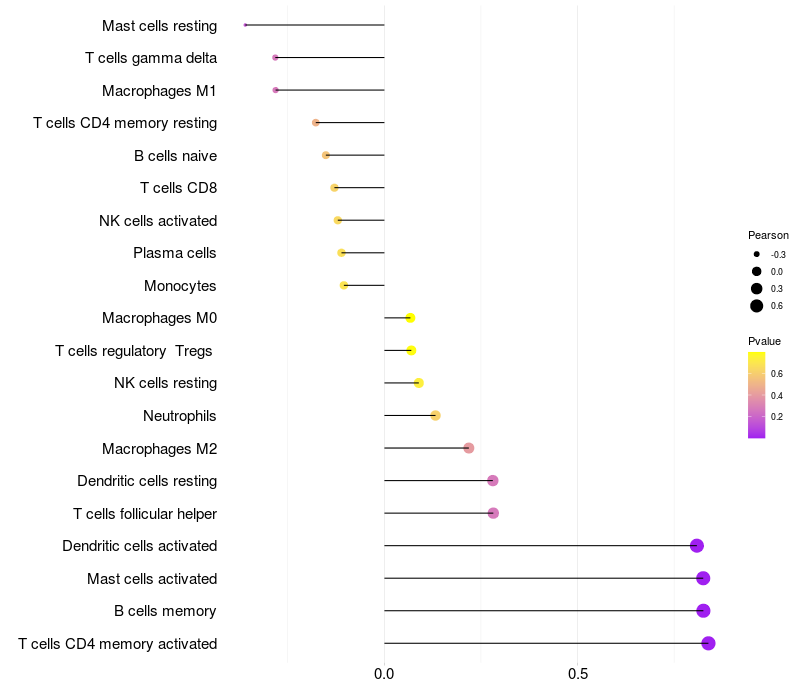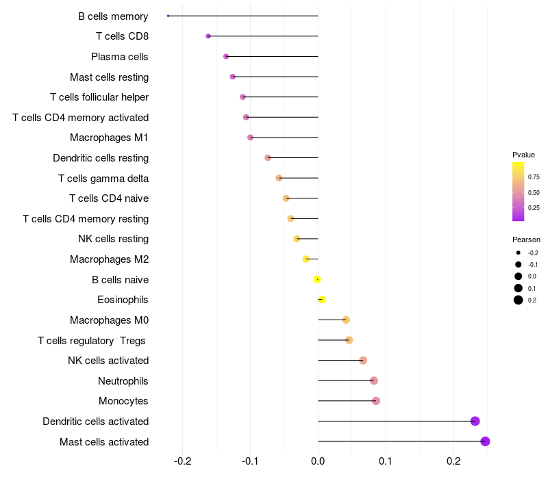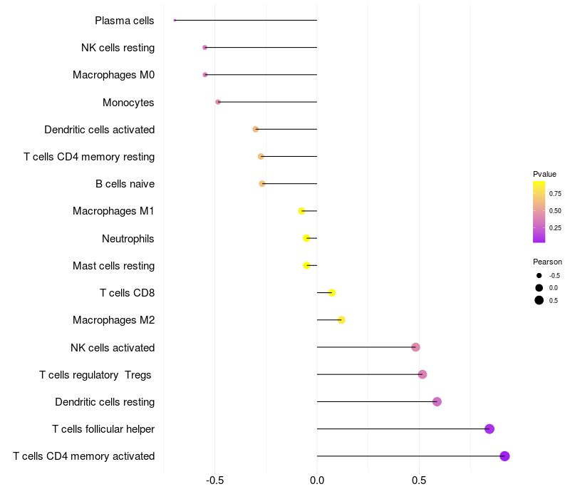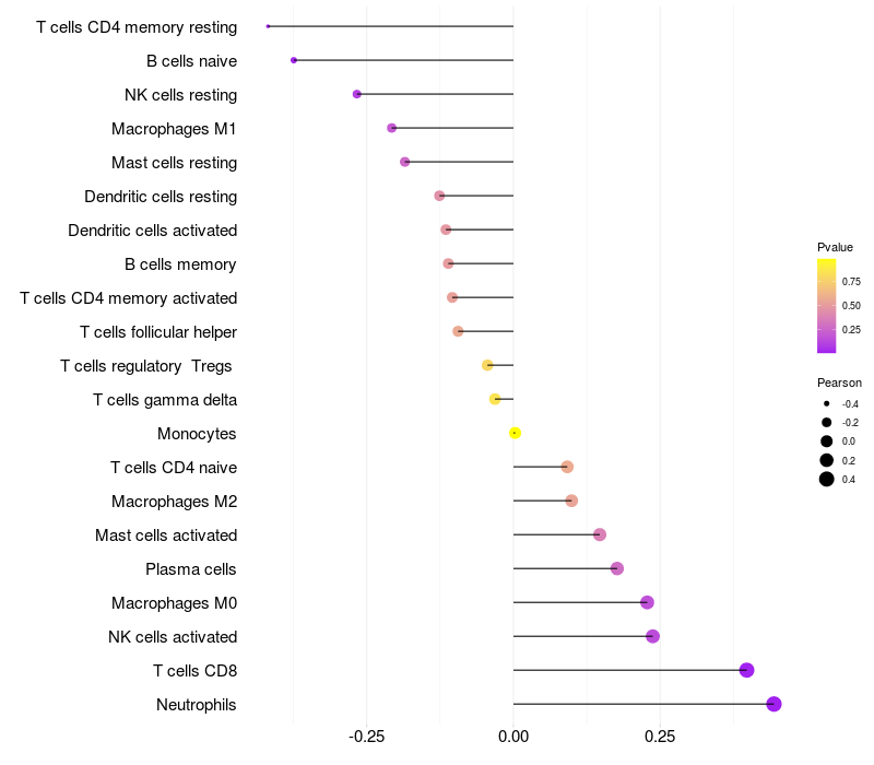 HeatMap of cell type fractions in all samples Lollipop of KPTN expression and immune infiltrating cell level correlation result in HPV+ samples