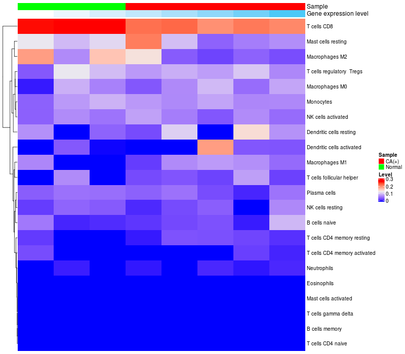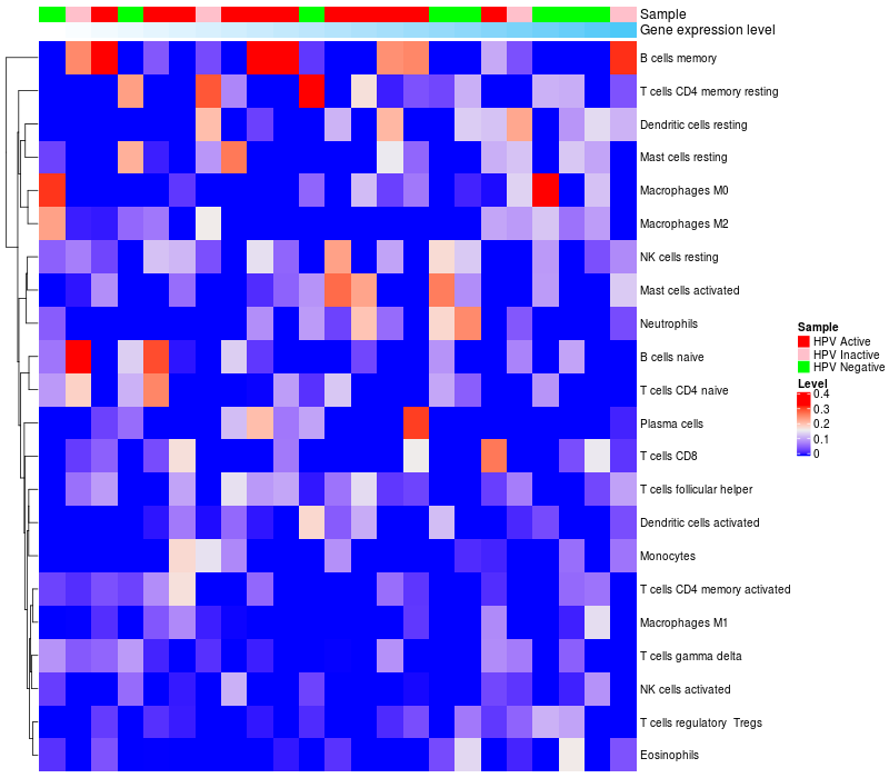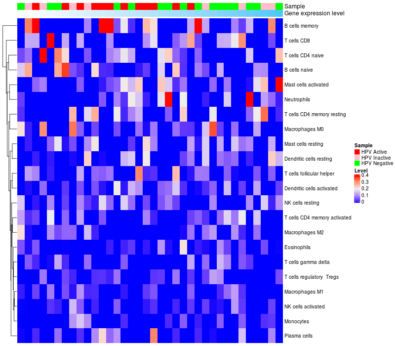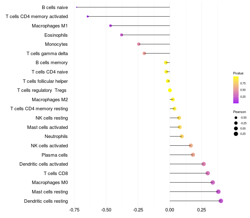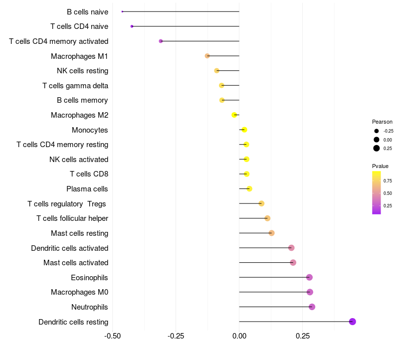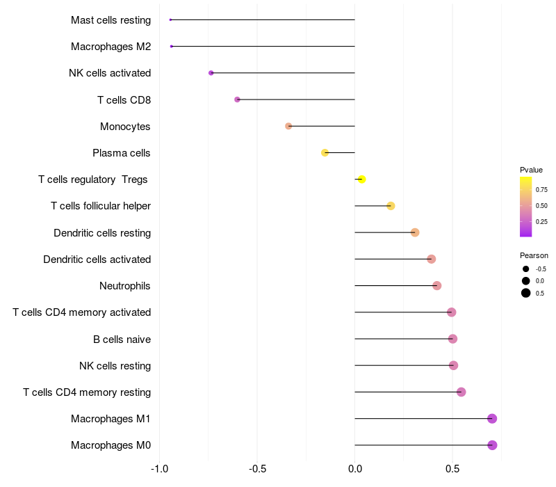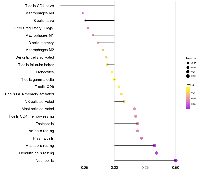 Lollipop of KRT16P3 expression and immune infiltrating cell level correlation result in HPV+ samples
