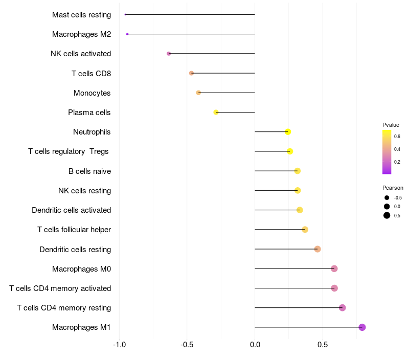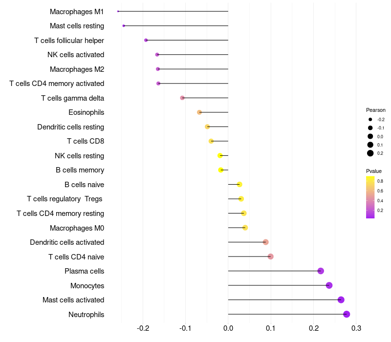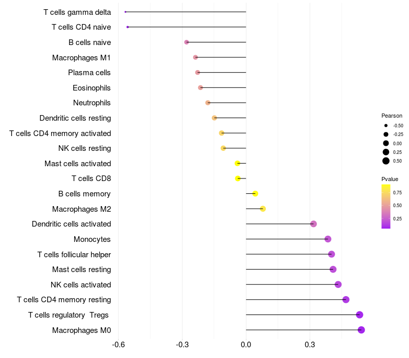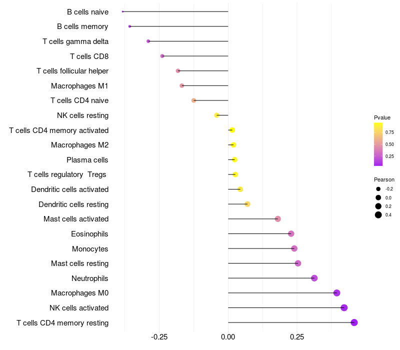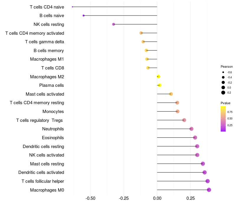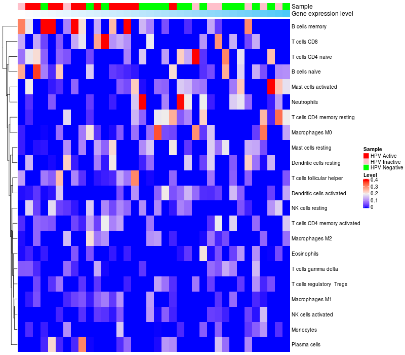 HeatMap of cell type fractions in all samples Lollipop of KRT42P expression and immune infiltrating cell level correlation result in HPV+ samples