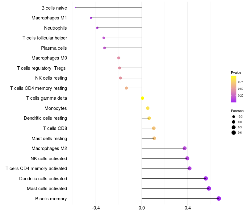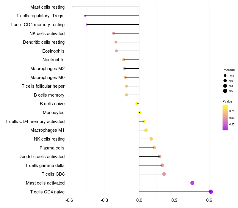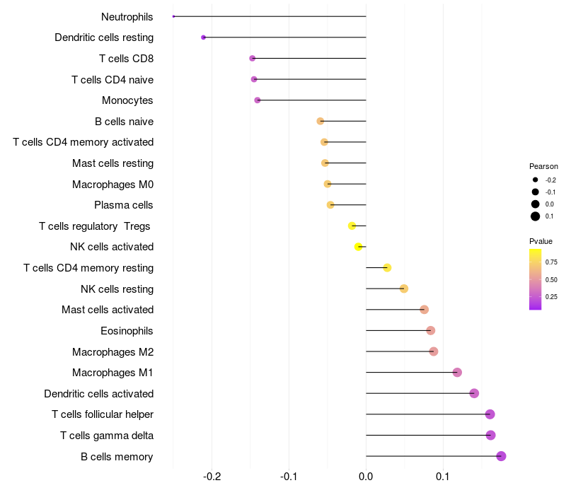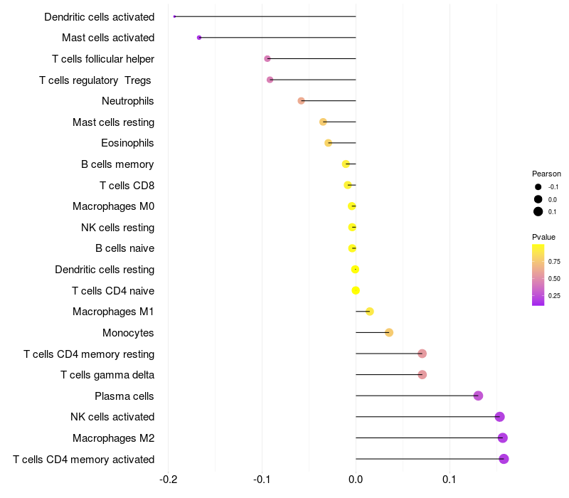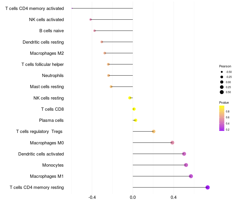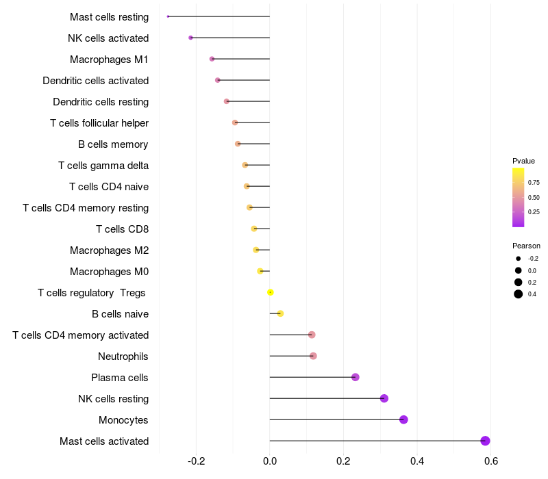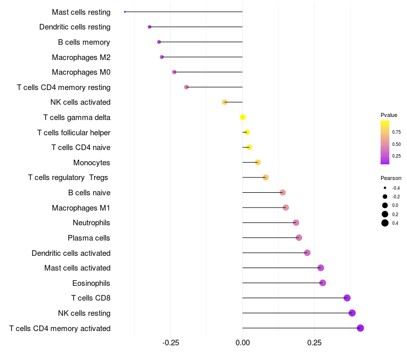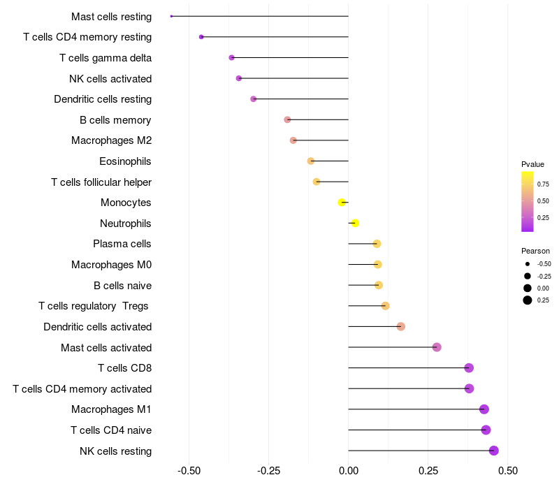 Lollipop of KRTAP4-8 expression and immune infiltrating cell level correlation result in HPV+ samples